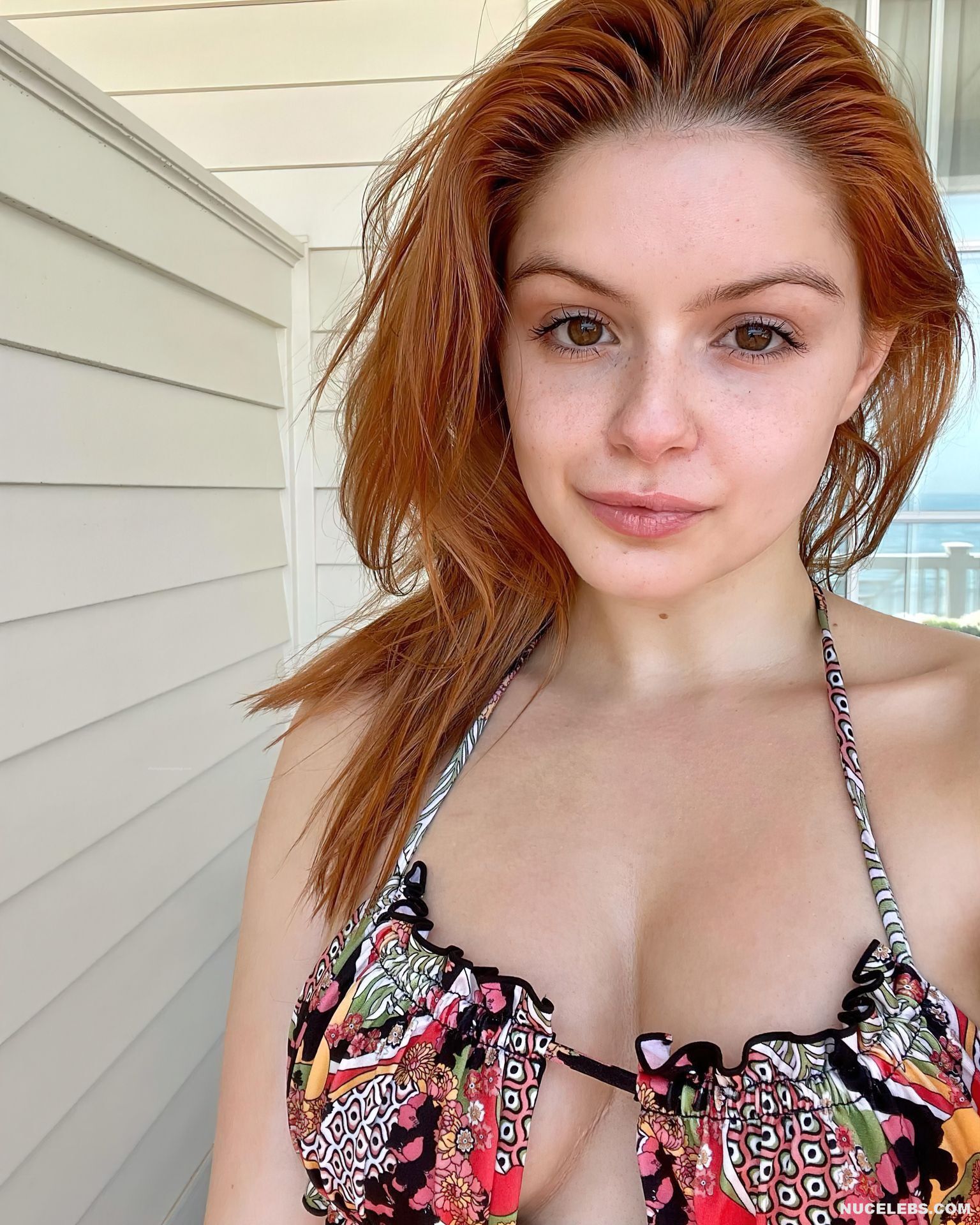 Recently, Ariel Winter showed some of her nude boobs when she took a selfie. This American actress decided to take a picture in a petite bikini, the top of which was too small for her juicy melons. So Ariel Winter’s nude boobies jumped out of her bra a bit from the bottom. Also, the celebrity managed to show off her awesome ass in tight thongs when she was sunbathing.