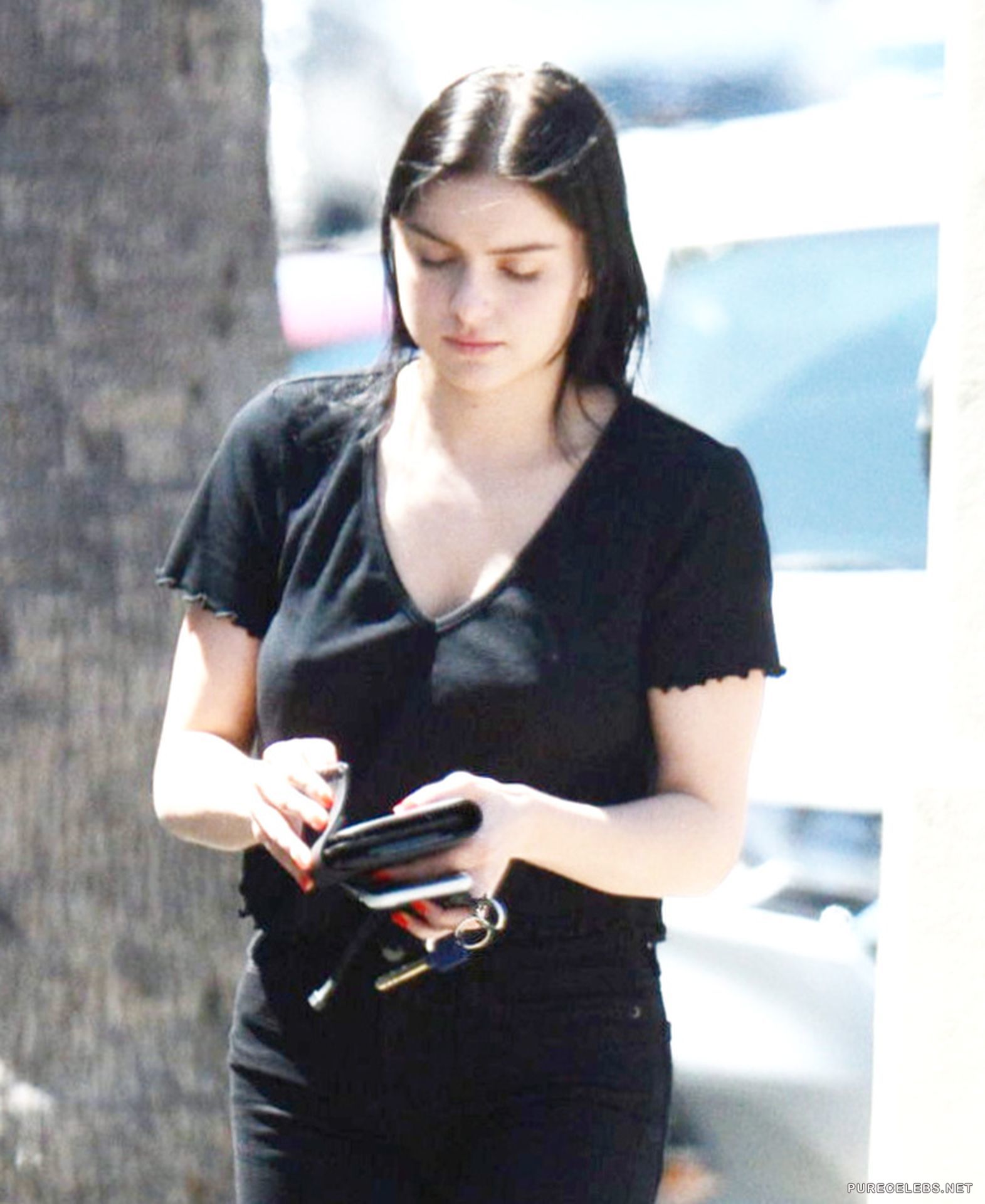 An American actress Ariel Winter was caught by the paparazzi when she went out for a walk braless. Stunning brunette wore black jeans and a tight black t-shirt through which we can clearly see her wonderful tits with hard nipples. Apparently young beauty decided to keep up with fashion trends and wear as little clothes as possible. Or maybe she just likes to have all eyes turned on her.