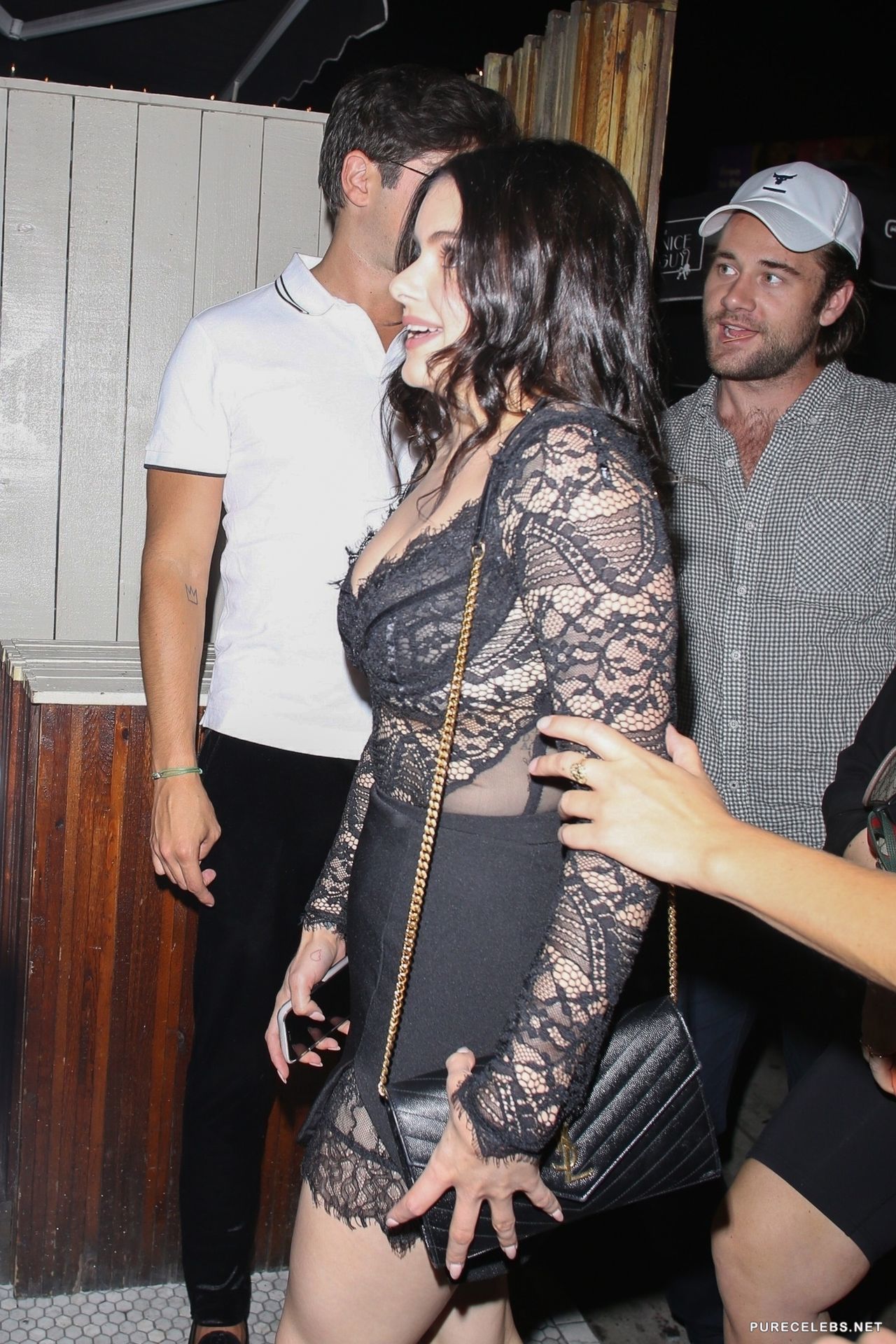 American actress Ariel Winter apparently decided to drive everyone crazy at the party, appearing there in a very revealing outfit. The bright brunette was wearing a very short black dress, the top of which was lace. Her slender legs looked insanely seductive in it, and from her awesome boobs, which you can clearly see through the translucent top, it was simply impossible to look away. This babe is insanely sexy!
