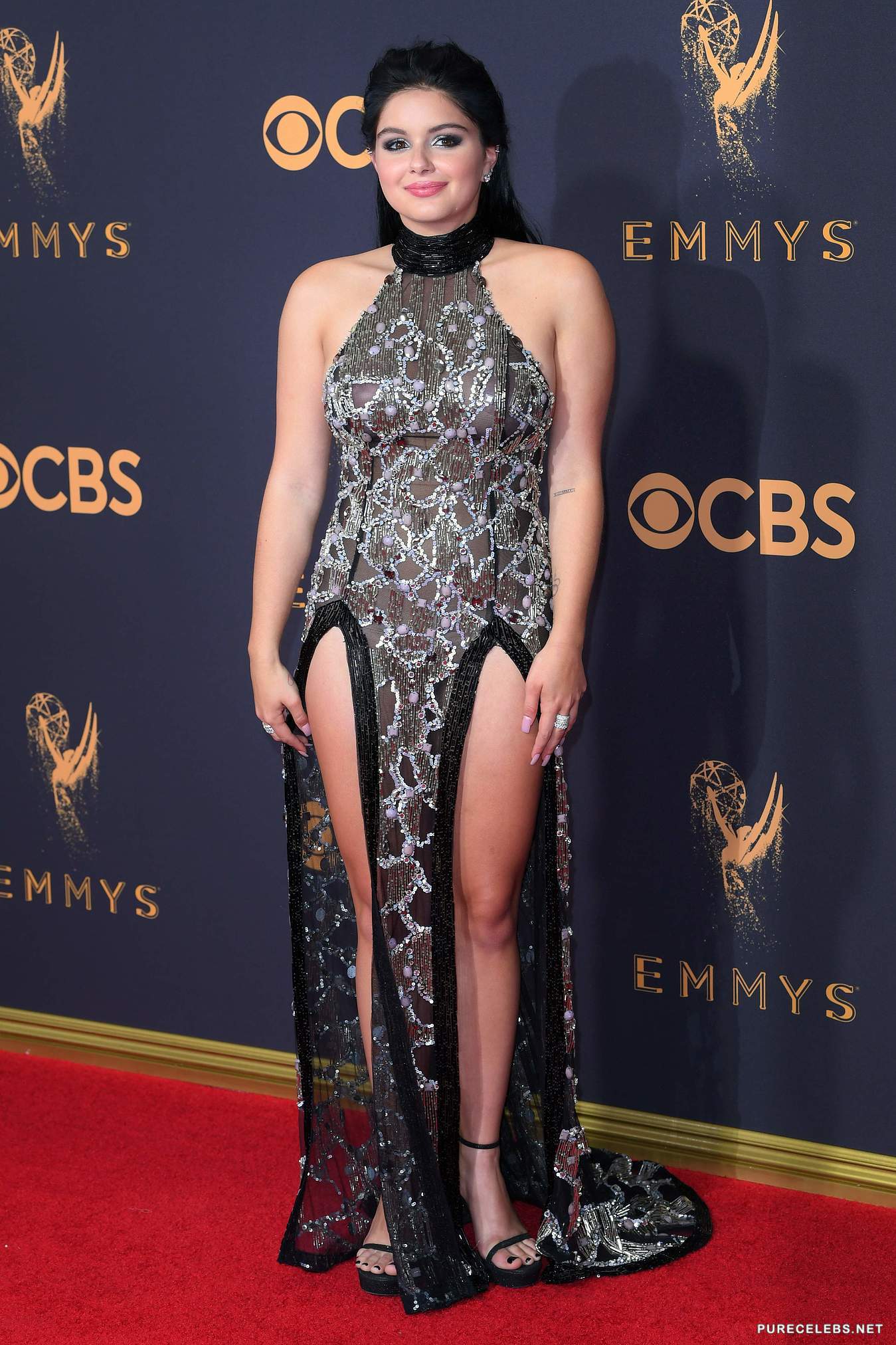 Teen actress Ariel Winter was recently photographed at the Emmy Awards in Los Angeles wearing a sexy black dress. The provocative dress had slits down both sides and showed off her attractive long legs. This 19 year old star of the hit TV show Modern Family has blossomed into a hot babe and we can’t help admiring her plump natural boobs and stunning ass while she parades on the red carpet.