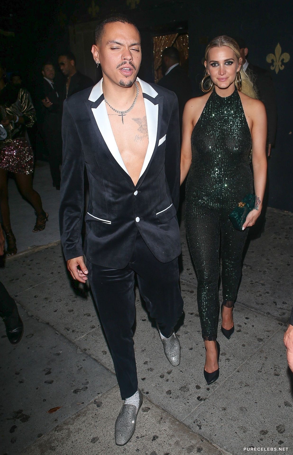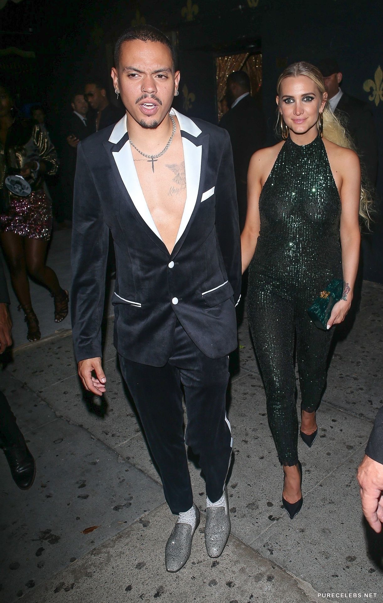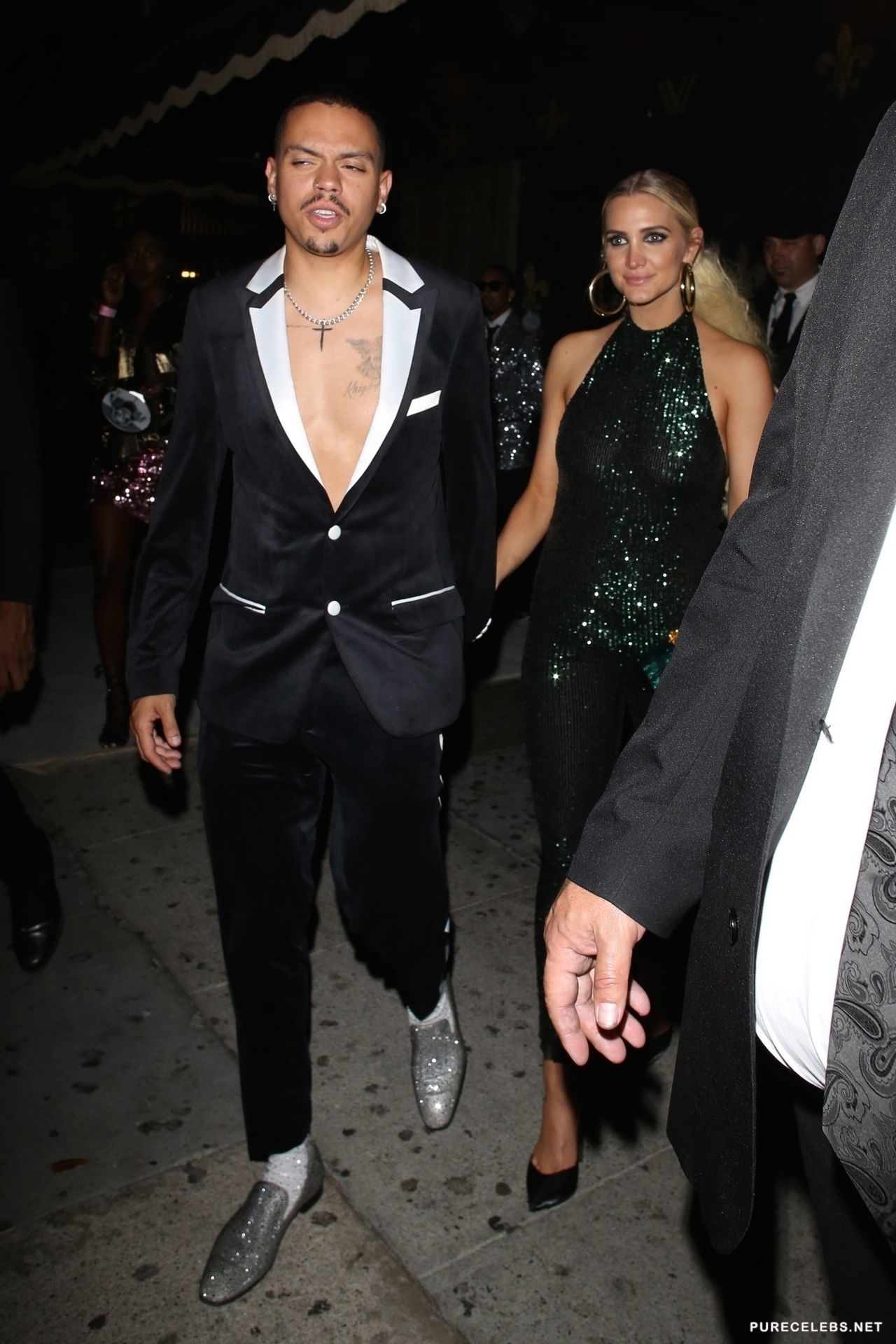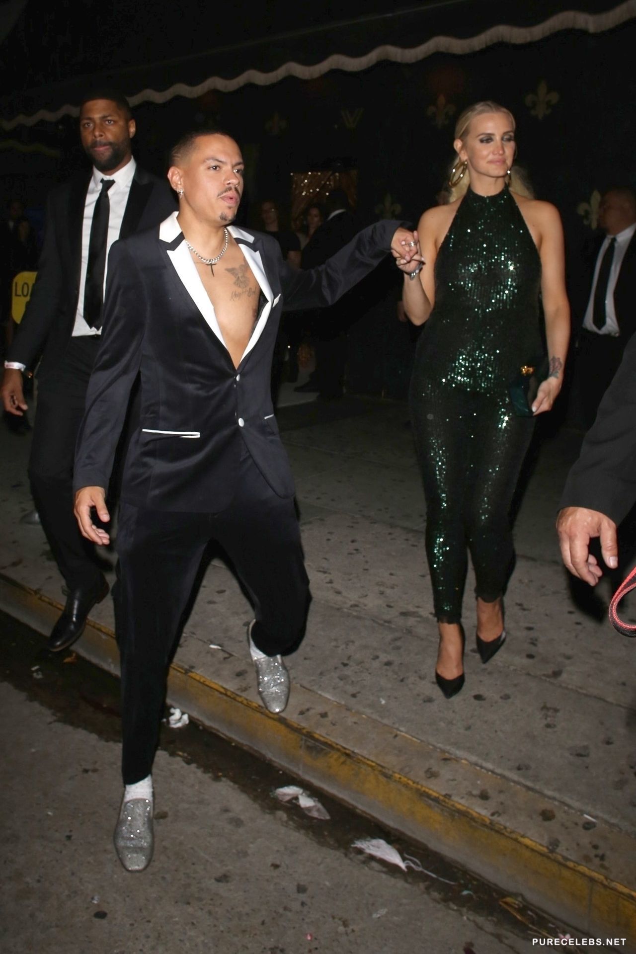Not long ago, amazing singer Ashlee Simpson attended an event with her husband. Blonde has made herself a beautiful hairstyle, bright makeup and complemented her look with big round golden earrings. She wore a black tight-fitting shiny black jumpsuit that beautifully showed off her stunning figure. The top of the jumpsuit shone through, and we can clearly see her wonderful tits with big hard nipples.
