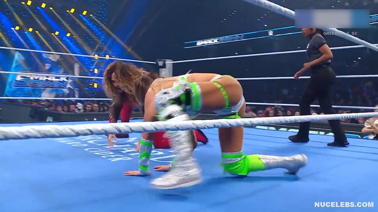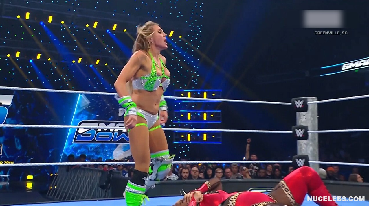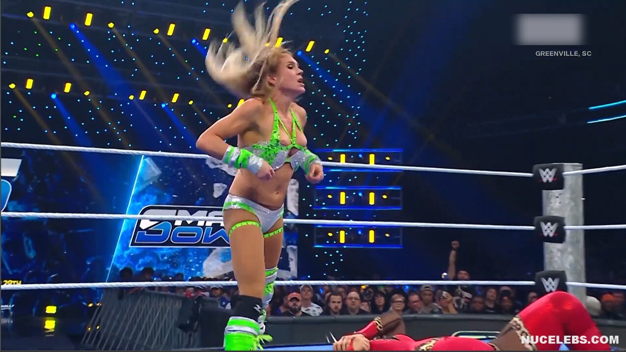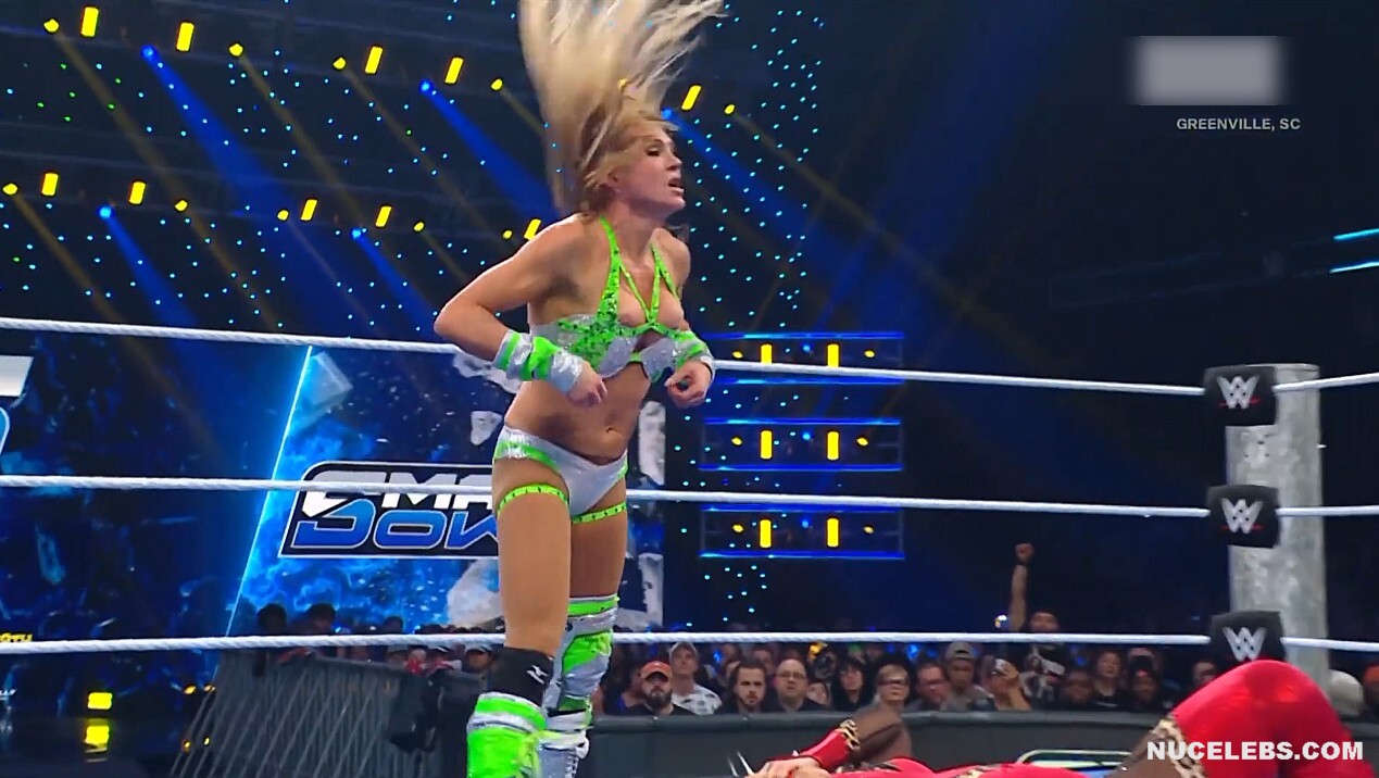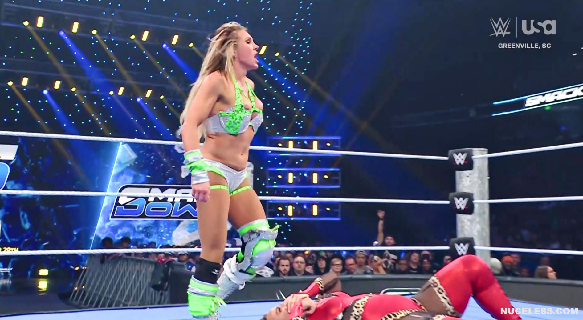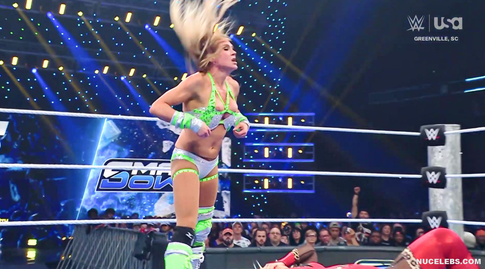 Ashley Fliehr, an American professional wrestler, in WWE SmackDown, chose an incredible costume. She fought so hard that her bra slipped down a little. Thanks to this, Ashley Fliehr naked boobs are on full display. Just look at those pink nipples, they’re so tempting you just want to lick them!