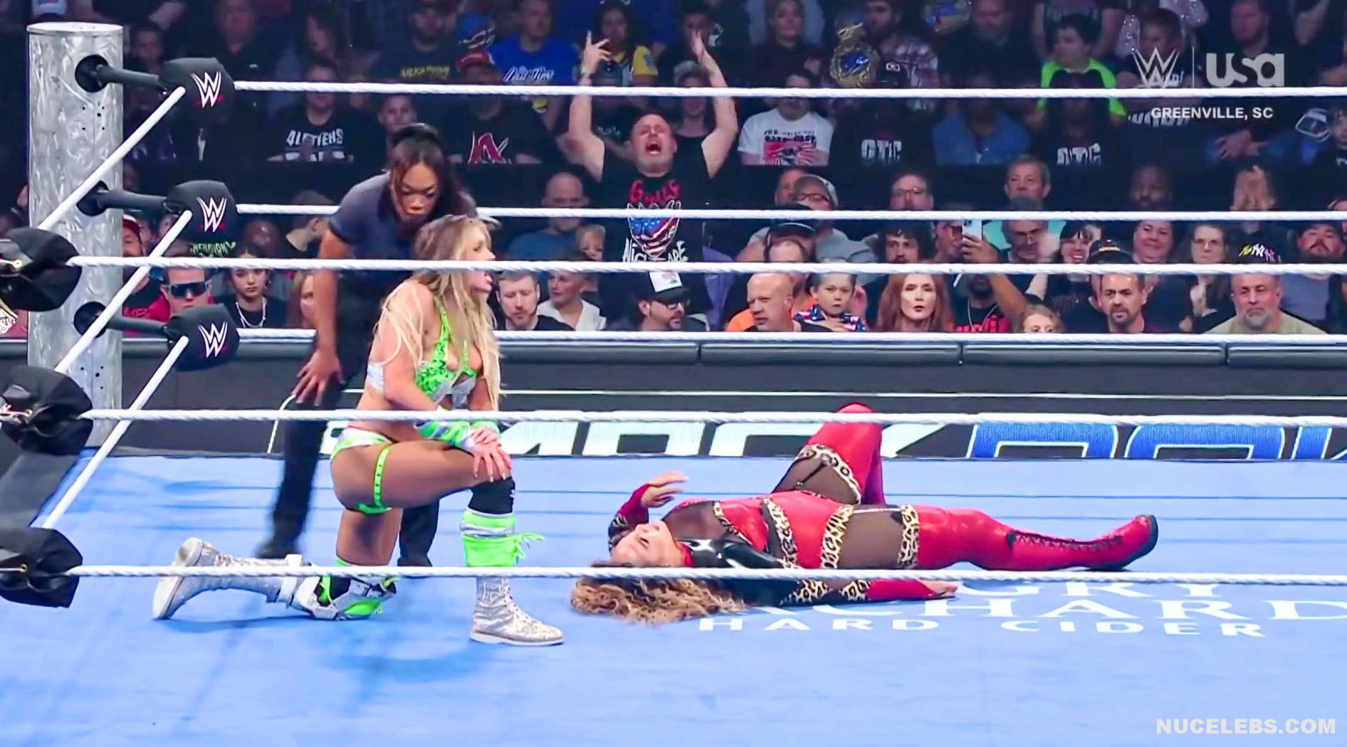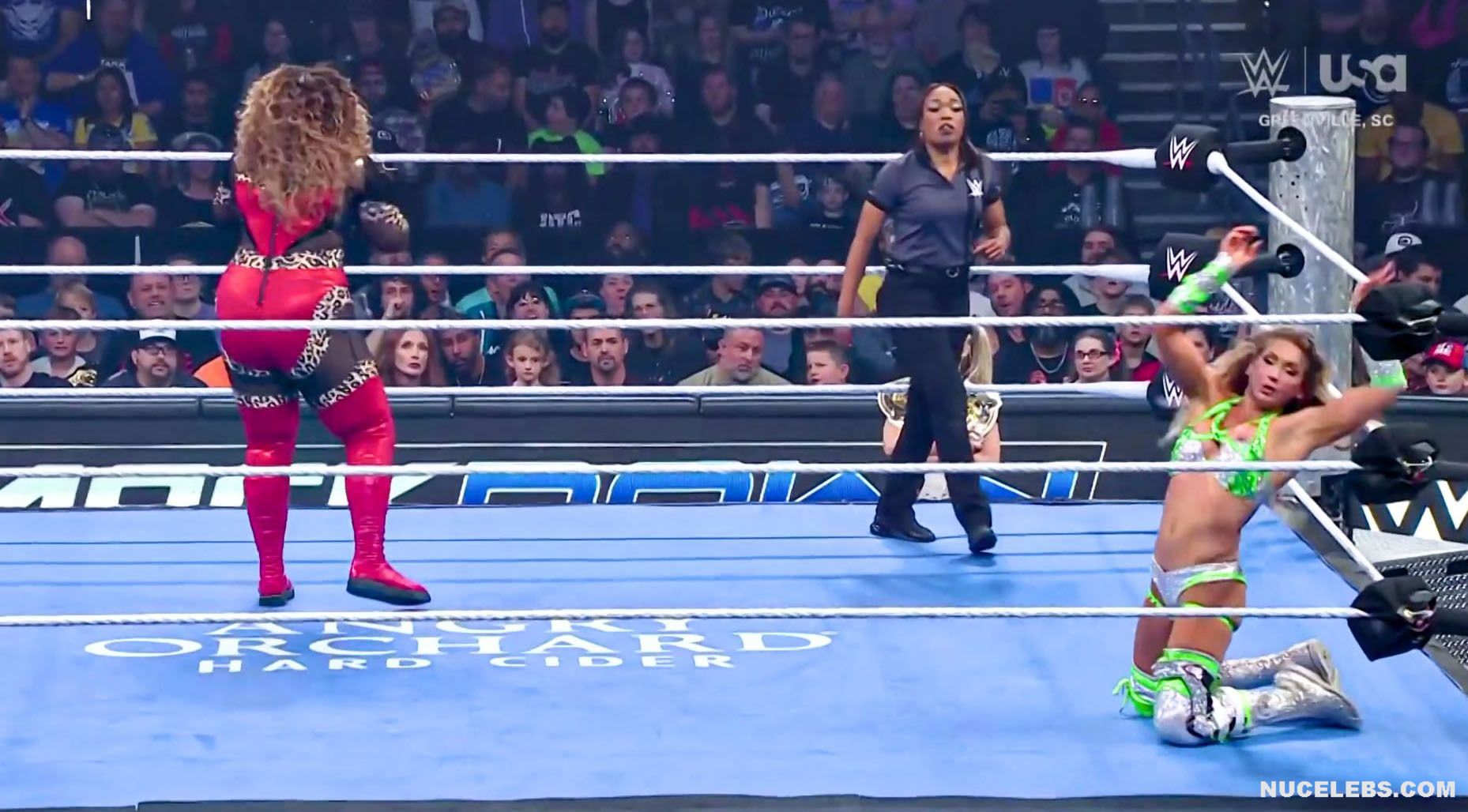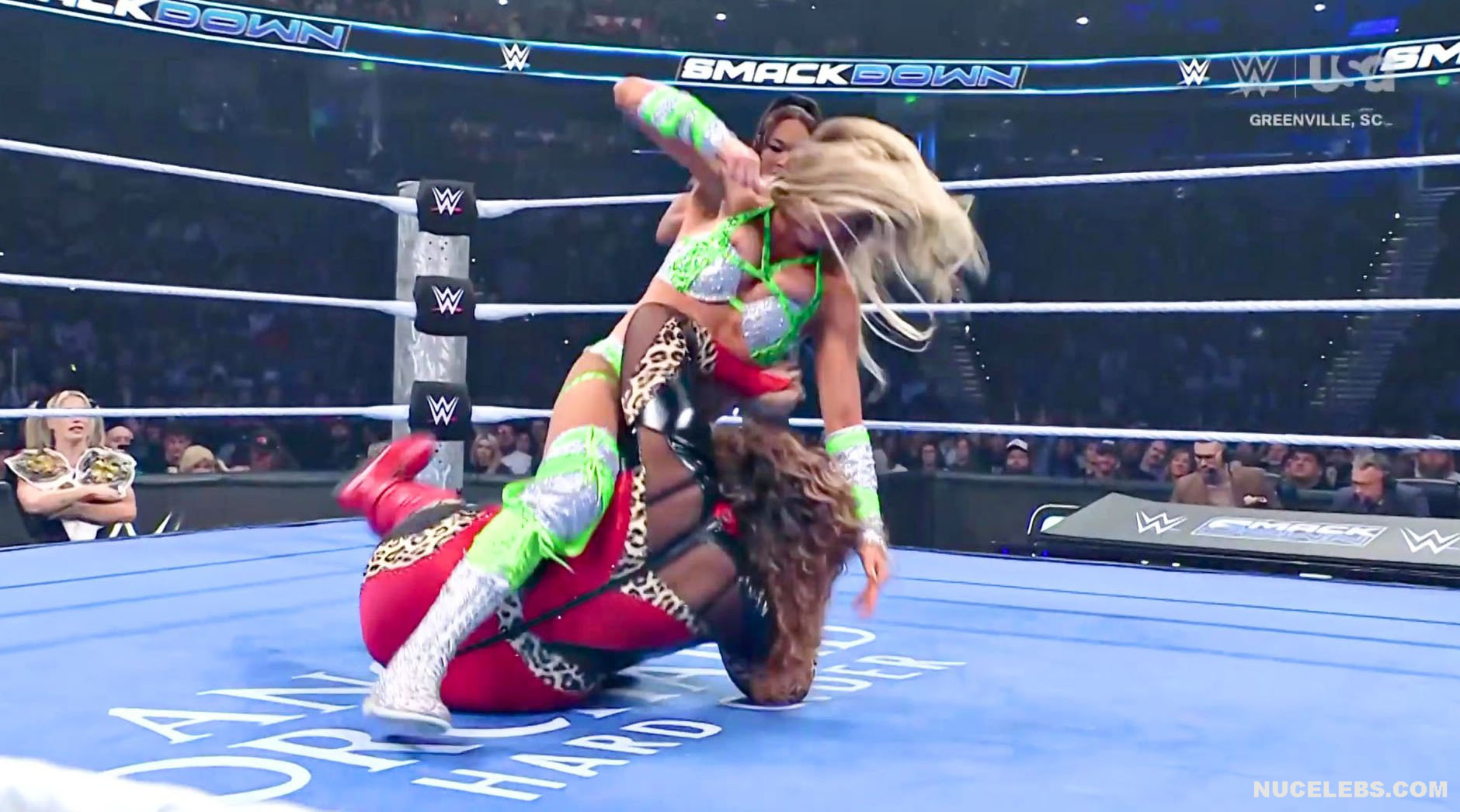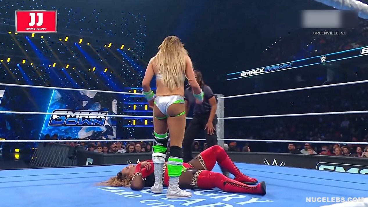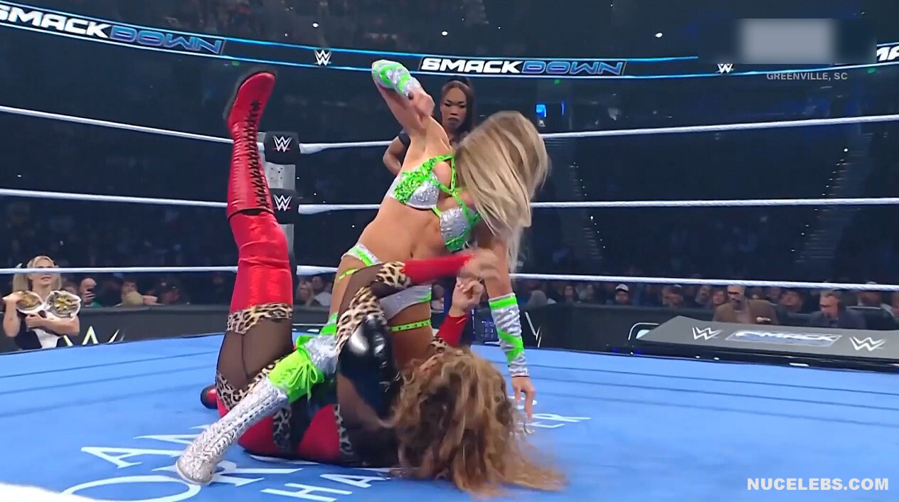 Ashley Fliehr, an American professional wrestler, in WWE SmackDown, chose an incredible costume. She fought so hard that her bra slipped down a little. Thanks to this, Ashley Fliehr naked boobs are on full display. Just look at those pink nipples, they’re so tempting you just want to lick them!
