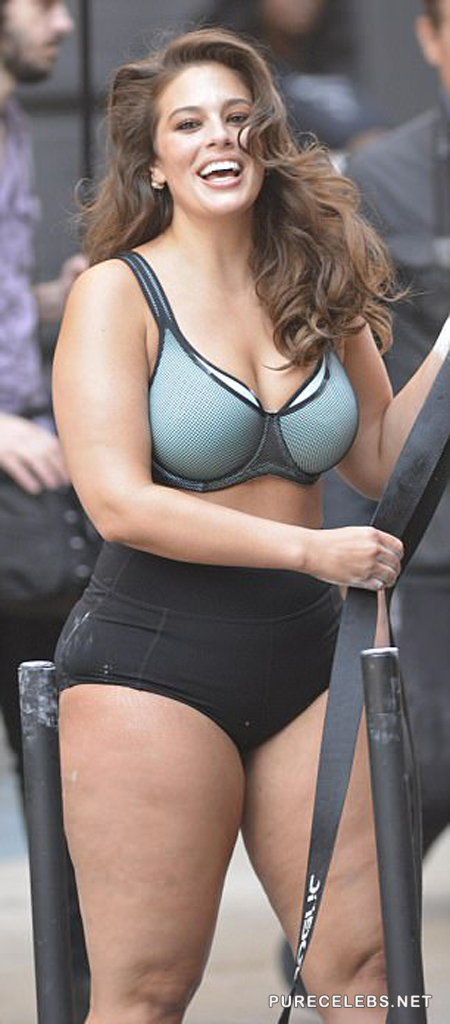 The hot plus size model Ashley Graham, star of America’s Next Top Model, was caught on camera by paparazzi while filming a promotional video. The curvy brunette was wearing some sexy panties which accentuated her massive ass. Her huge tits could barely stay contained within her tight bra while she danced and smiled for the camera. This delicious model and star of The Boys Club always leaves her fans hungry for more of her luscious curves.