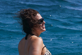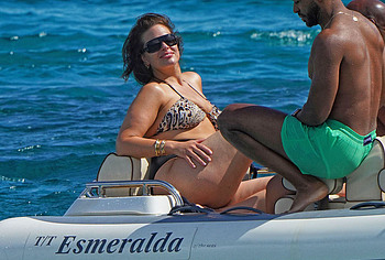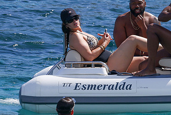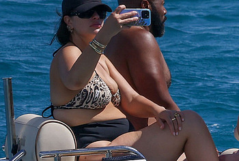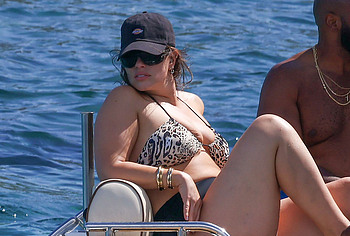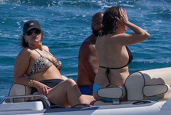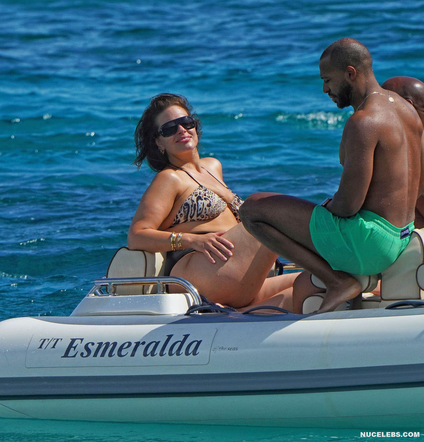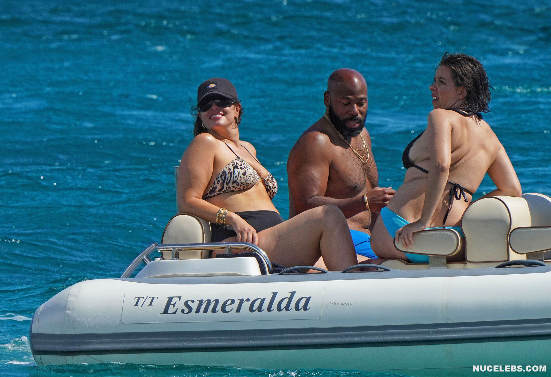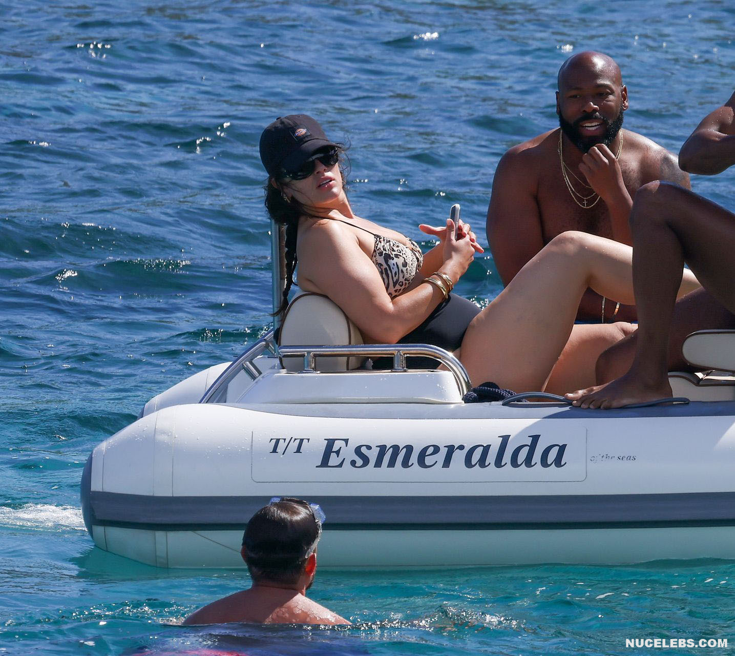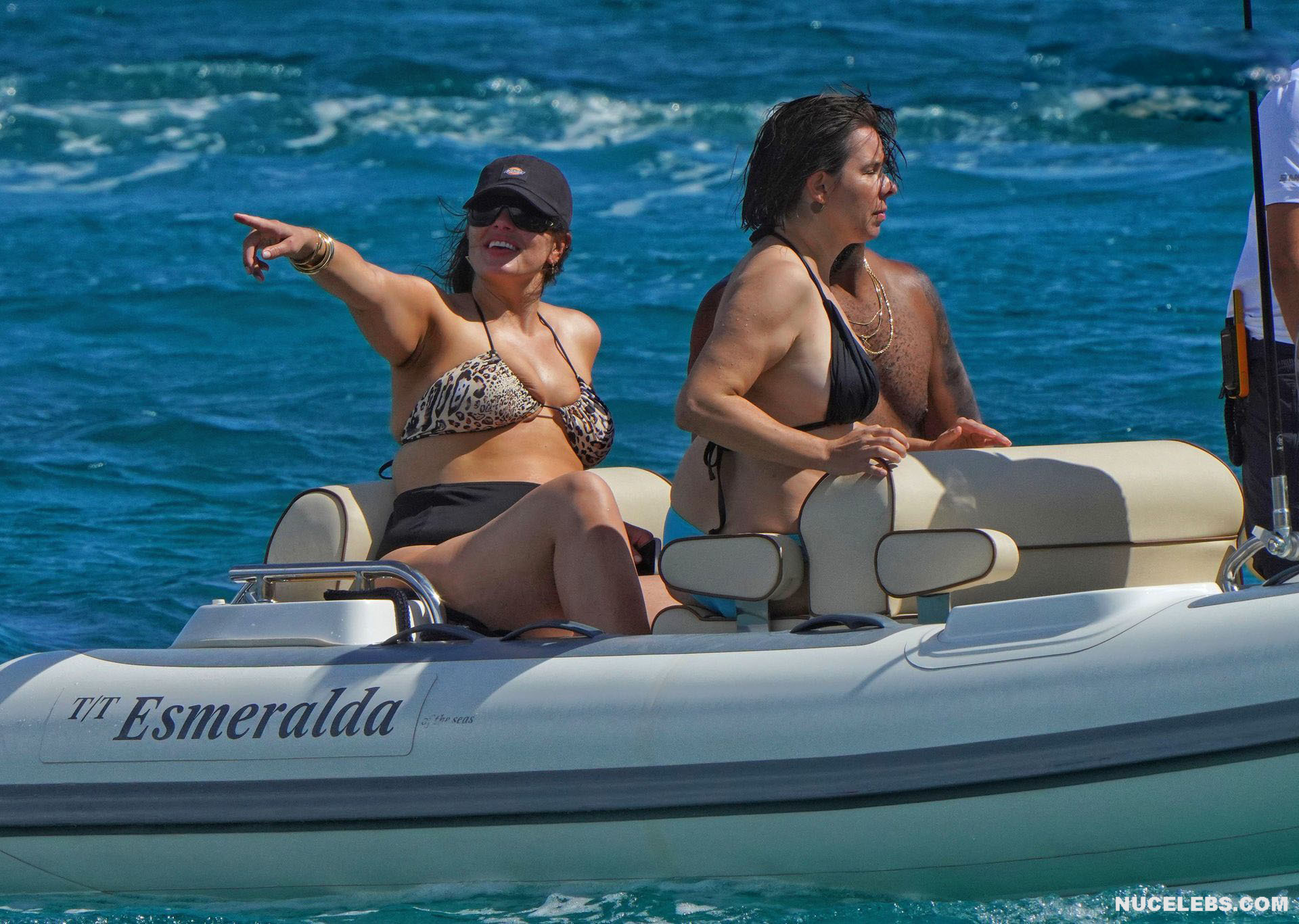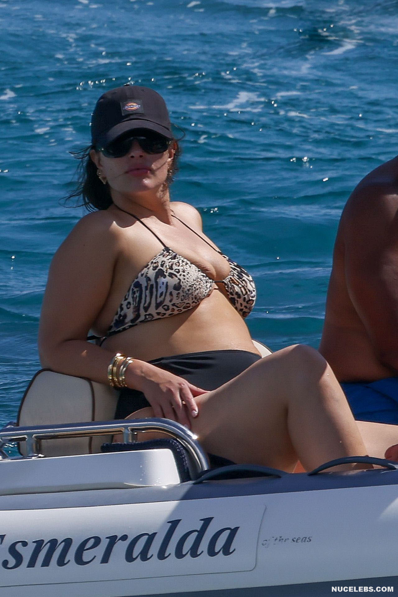 Step into the thrilling world of Ashley Graham as she transforms her yacht into an adventure haven. Get a glimpse of unscripted joy as this relaxes in a bikini in animal print. The celebrity also wore sunglasses and a black cap. Ashley Graham looked absolutely relaxed as she sailed the sea on a speedboat. Maybe that’s why Ashley Graham didn’t notice how her nude boob slipped out of her small bra and her nipple was exposed?