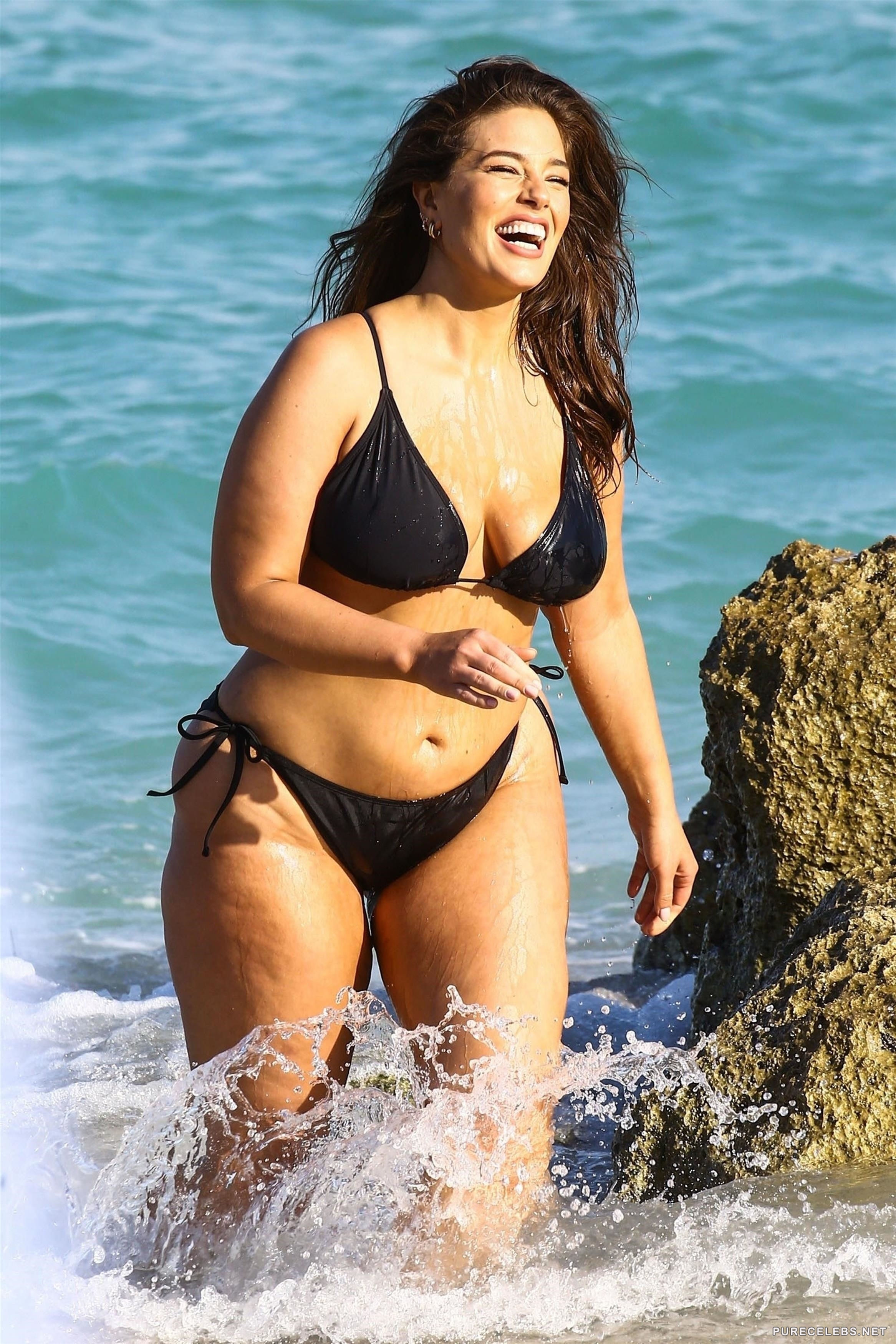 Ashley Graham proudly holds the title of thickest bitch on Instagram. This sexy plus size model recently took part in a photo shoot that involved her dressing in a small black bikini and posing on a tropical beach. Ashley quickly got down on all fours like the good little bitch that she is and allowed photographers to get some shots of both her massive ass and huge natural boobs.