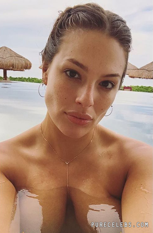 Fantastic Ashley Graham is an American model and she is best known for her plus-size modeling in bikinis and tight lingerie. And since she loves taking photos she teases her fans with her naked breasts in a selfie photo that she posted on her social network. Everyone freaked out how good looking this babe is. So we collected some of her photos for your enjoyment.