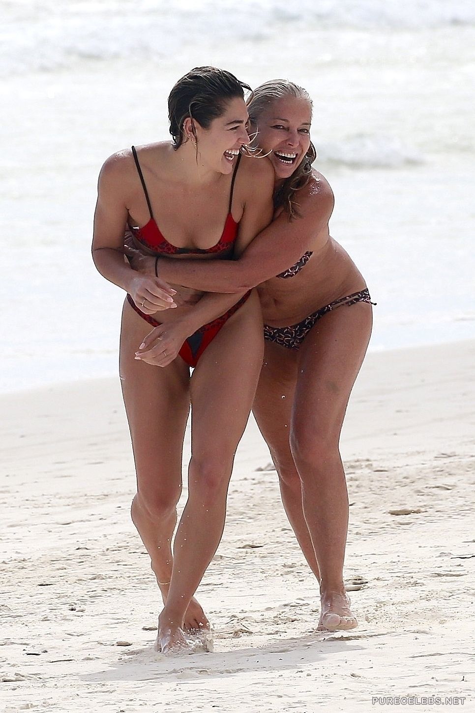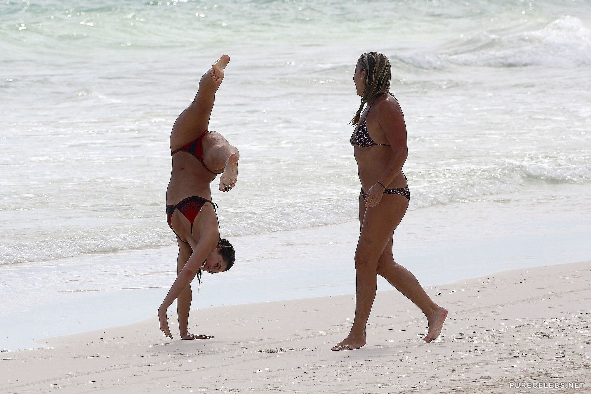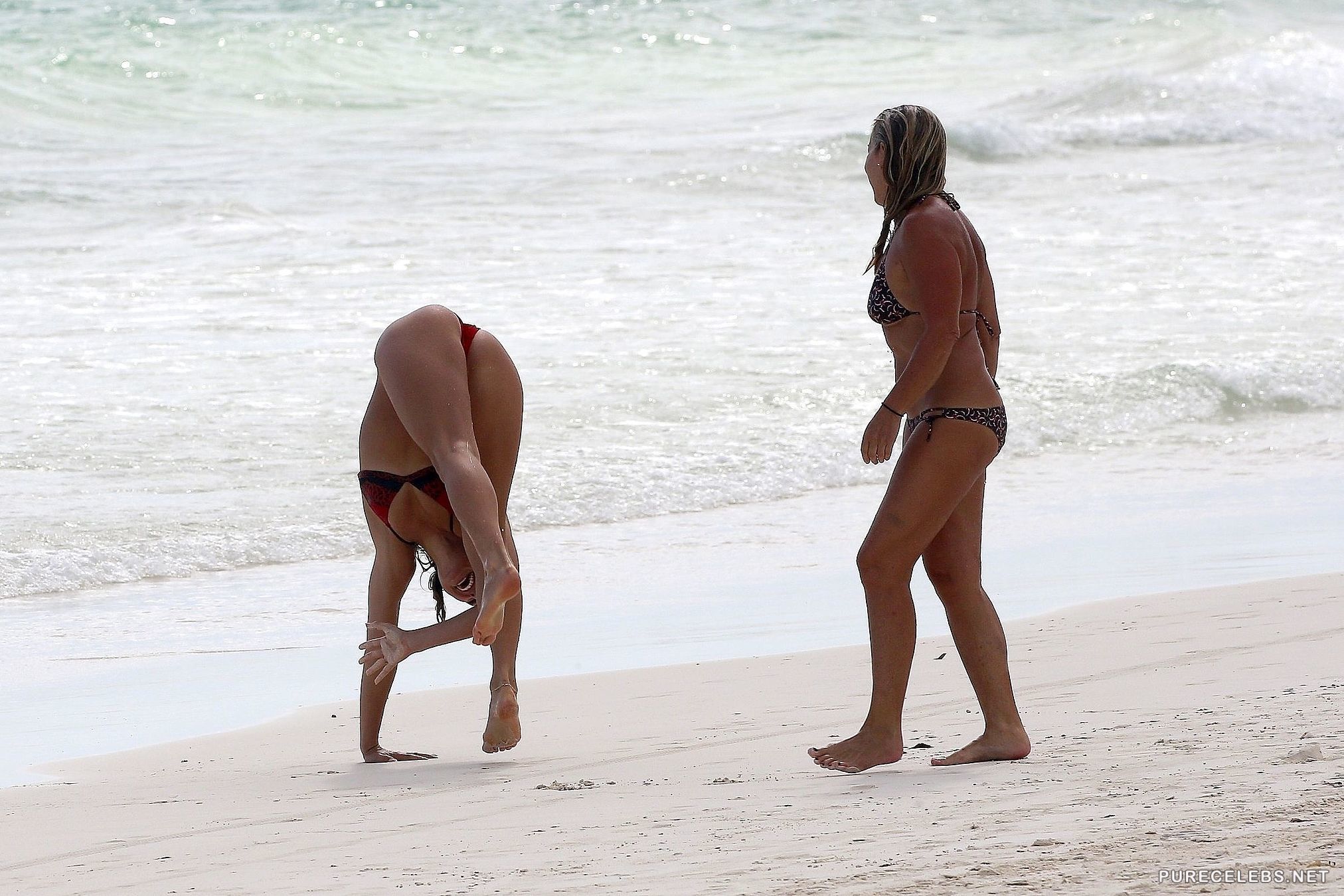 Australian model Ashley Hart feels right at home on the beach. The stunning brunette was seen by paparazzi enjoying a sunny day with her friends and family. She wore a miniature red bikini to cover her private parts, but the small garment barely covers her amazing tits and round ass. By the way she looked coming out of the water after a swim you would think she is a mermaid.