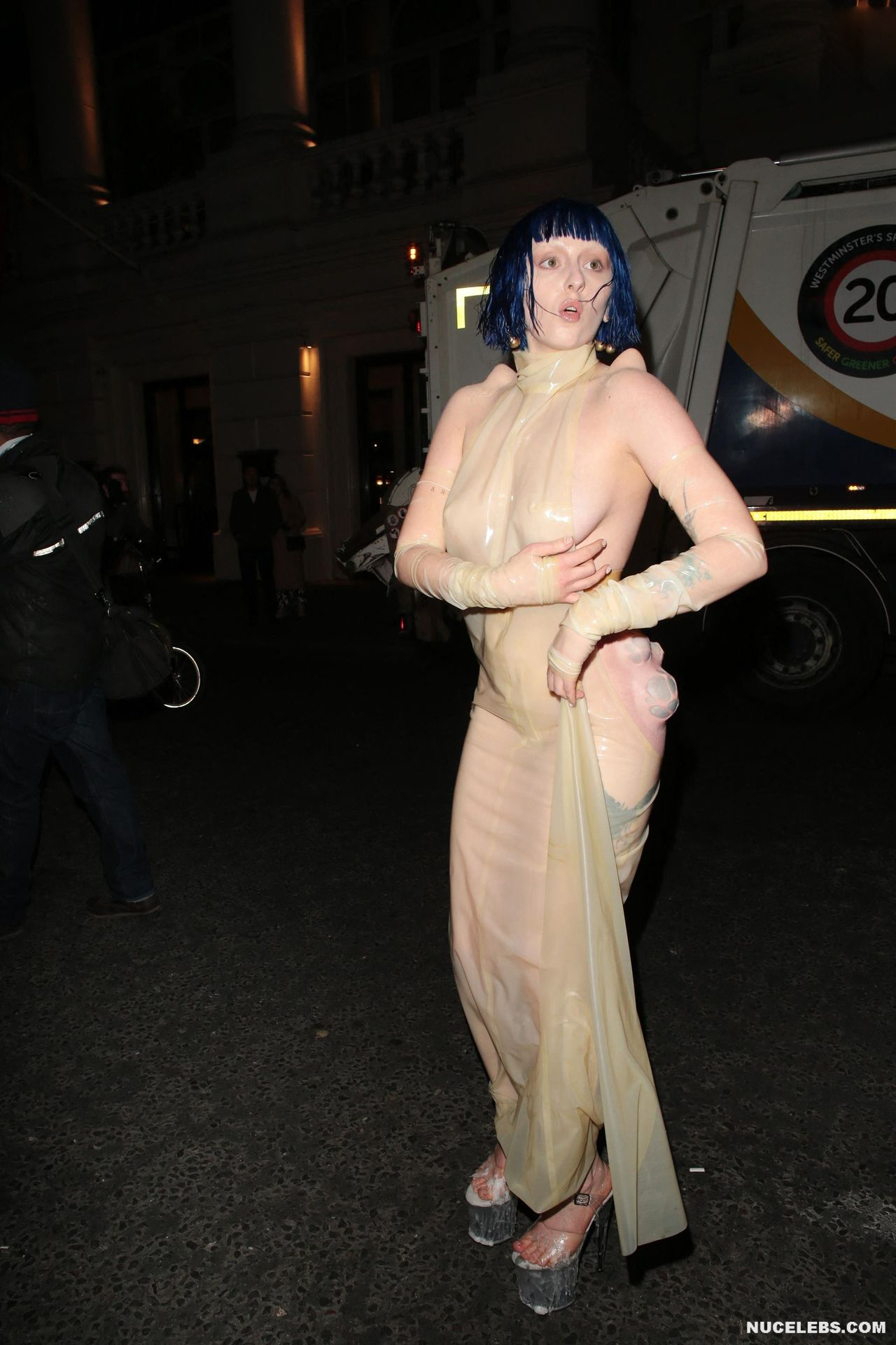 Ashnikko shows off her nude boobs during one of the events! This 27-year-old singer loves to shock the audience. And this time was no exception. After all, the girl was wearing a latex beige dress that emphasized the curves of her body. Oh, her ass looked incredibly hot in that outfit! And Ashnikko nude boobies that were visible through the transparent latex were breathtaking!