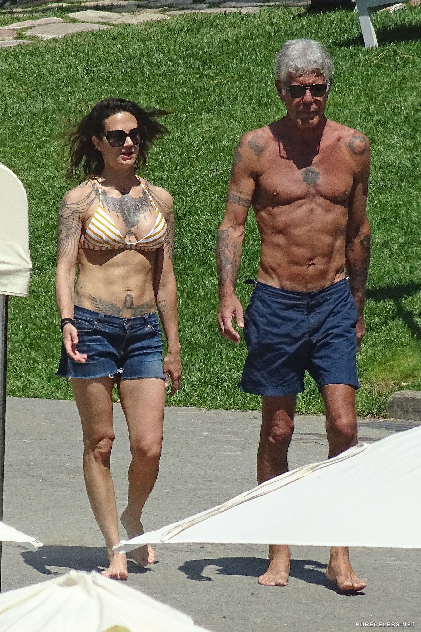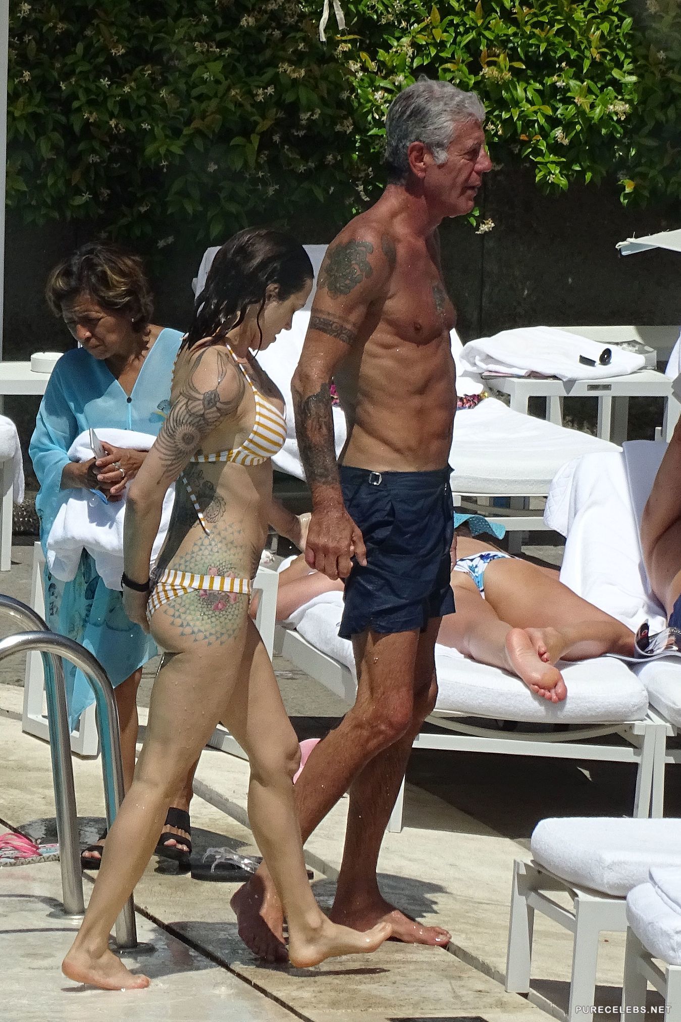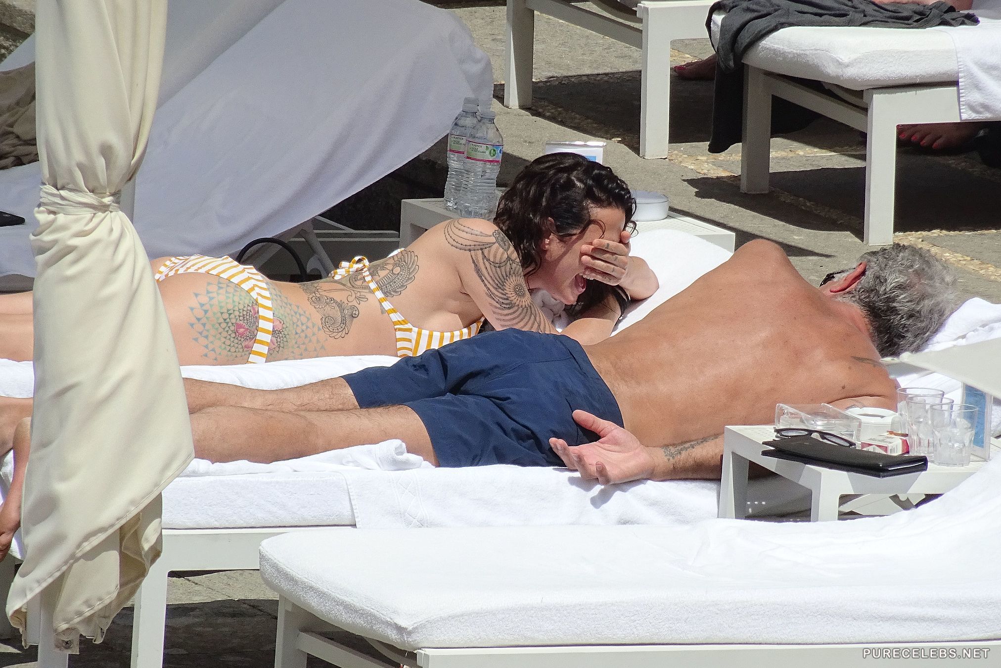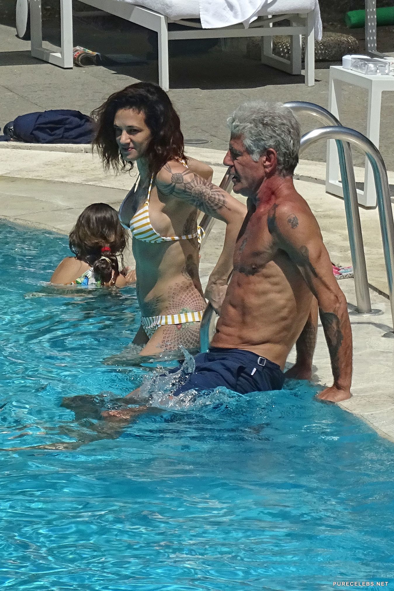 Europe has always been known as the home of beautiful women and Italian actress and model Asia Argento is no exception. This summer she was spotted by paparazzi longing around the pool in a miniature bikini that highlighted her massive fake tits. The 42 year old tattooed MILF enjoyed tanning and swimming with her friends as much as we enjoy seeing her stunning body in a wet bikini.