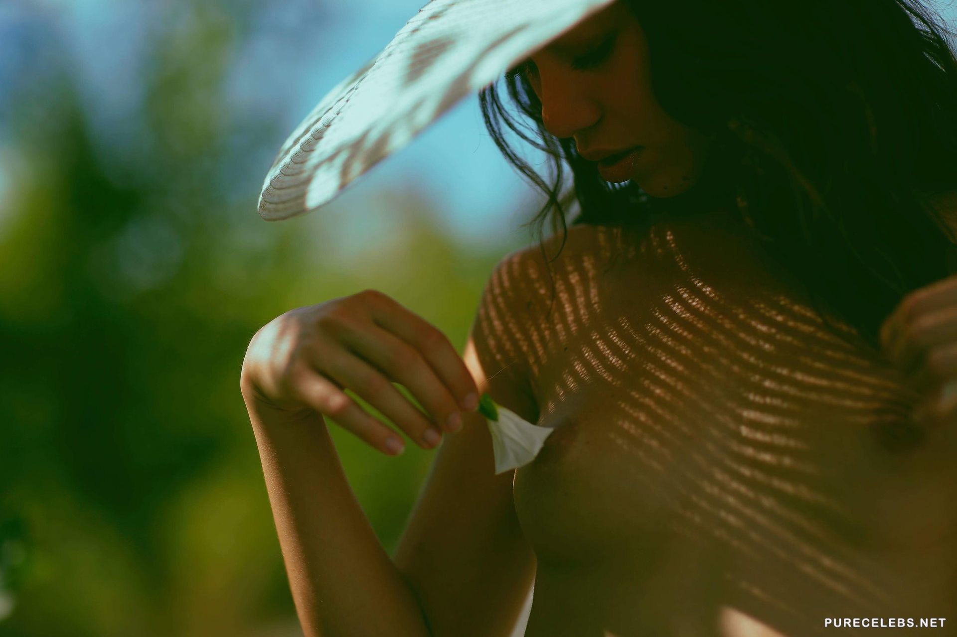 Asian Model Kitrysha took part in a photo shoot in nature. The girl was almost naked, wearing only white panties, a pendant and a big straw hat. A celebrity posed for the camera flaunting her awesome sweet titties with brown hard nipples. The star looked breathtaking and it certainly will make you think about her all night.