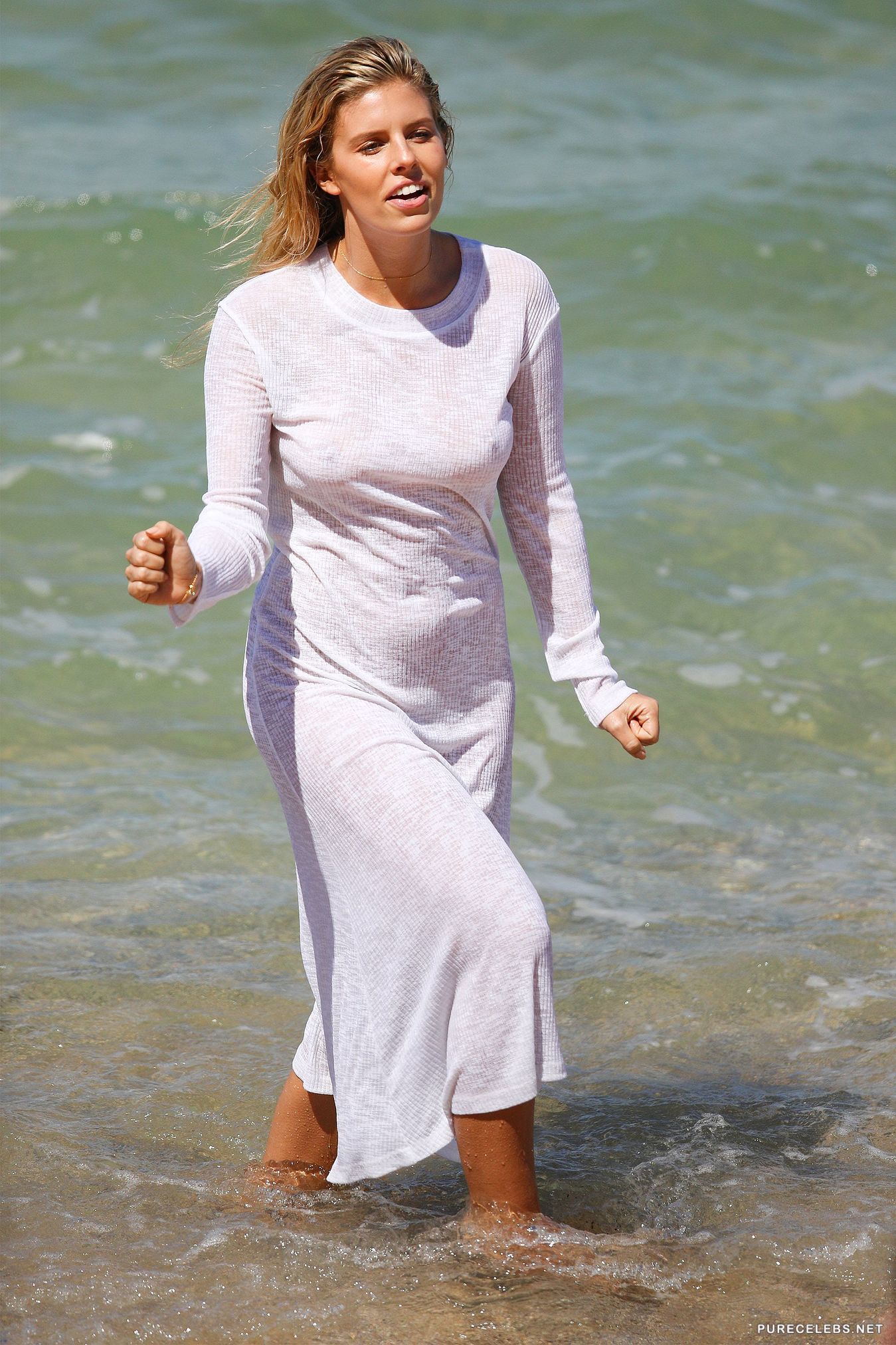 If this is the first time you are hearing about Natasha Oakley, you are in for a real treat. This hot blond Australian model is what male fantasies are made of. We bring you photos of her hard nipples poking through her sheer shirt. Natasha was unaware that she was being watched and photographed by paparazzi and continued enjoying her time at the beach without worrying about covering her tits.