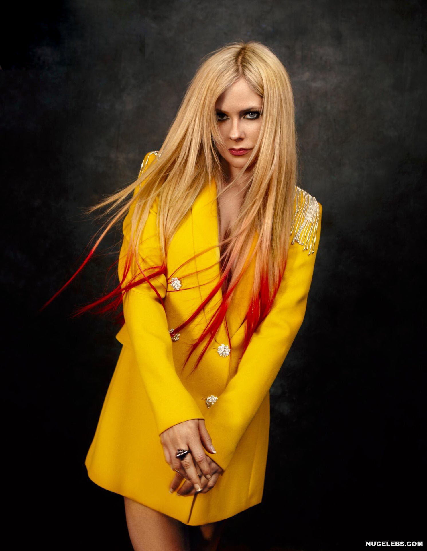 Avril Lavigne decided to show off her nude body in a photoshoot for BASIC Magazine. This charming blonde decided to pose braless in a very revealing outfit. For example, Avril Lavigne’s nude titty was very seductively peeking out of the deep neckline of her yellow jacket. Also, this singer showed off her awesome cleavage posing in a black puffy dress and high leather over the knee boots. Well, we are waiting for more naked photos of this star in the next photoshoots!