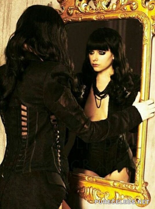 As years passed by, Avril Lavigne has changed her appearance and style many times. From skater punk girl, across pop diva, to dark and seductive goth girl like on these pictures. There is one thing that never changes, a fact that she is absolutely gorgeous. We can see that as she poses without bra, wearing black dress with huge cleavage that has allowed nipple slip and short dress that revealed her panties.