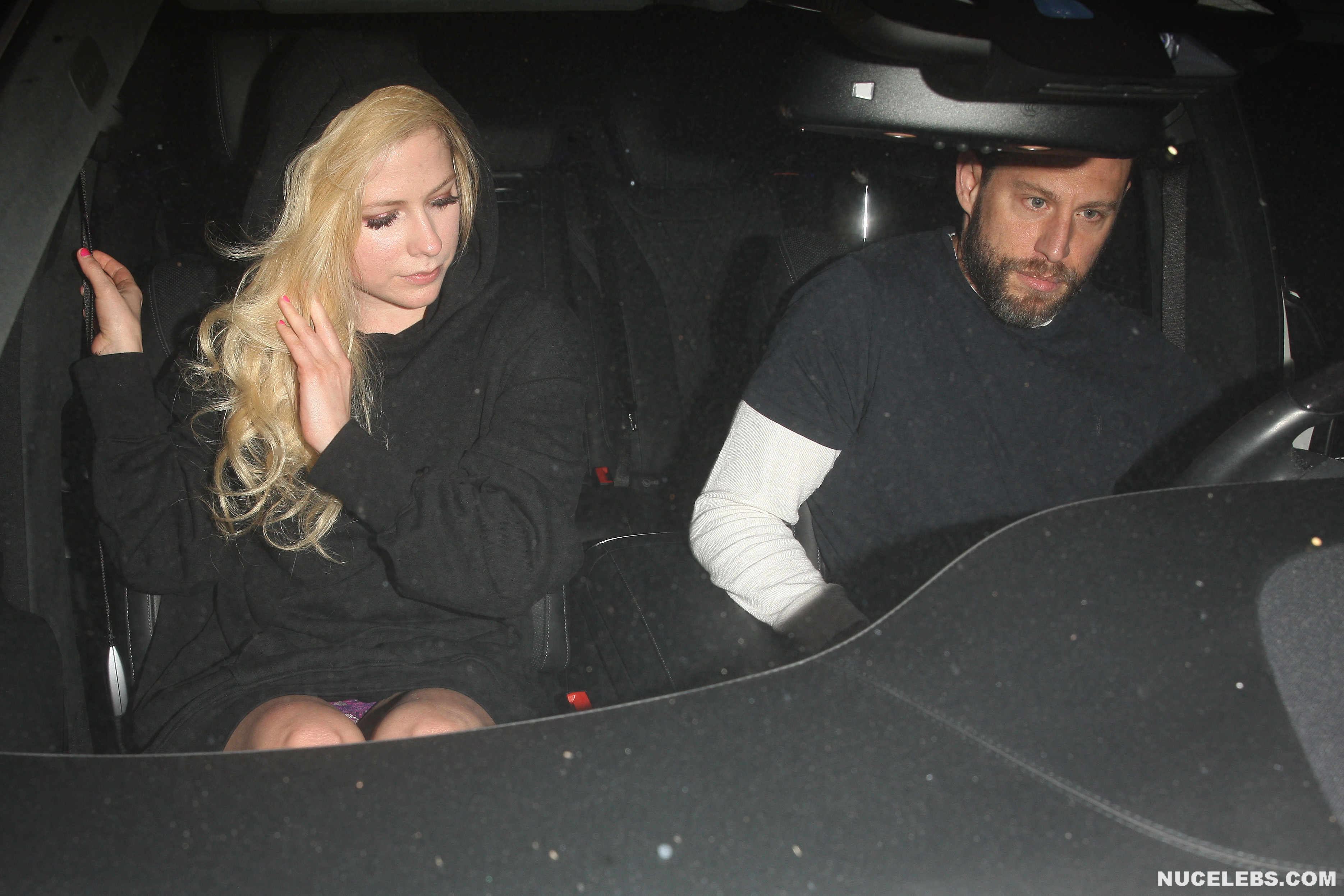 Paparazzi were nearly photographed the Canadian-French singer Avril Lavigne nude pussy. They took great upskirt photos of this singer as she got out of the car. Her black dress was so short that you could see her purple panties covering Avril Lavigne’s nude pussy. Well, nice pictures, but maybe next time this celebrity will show us her naughty bits?