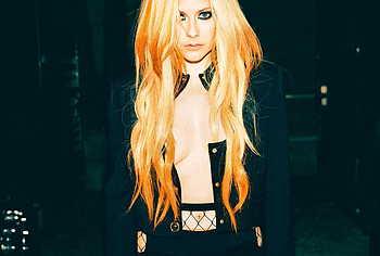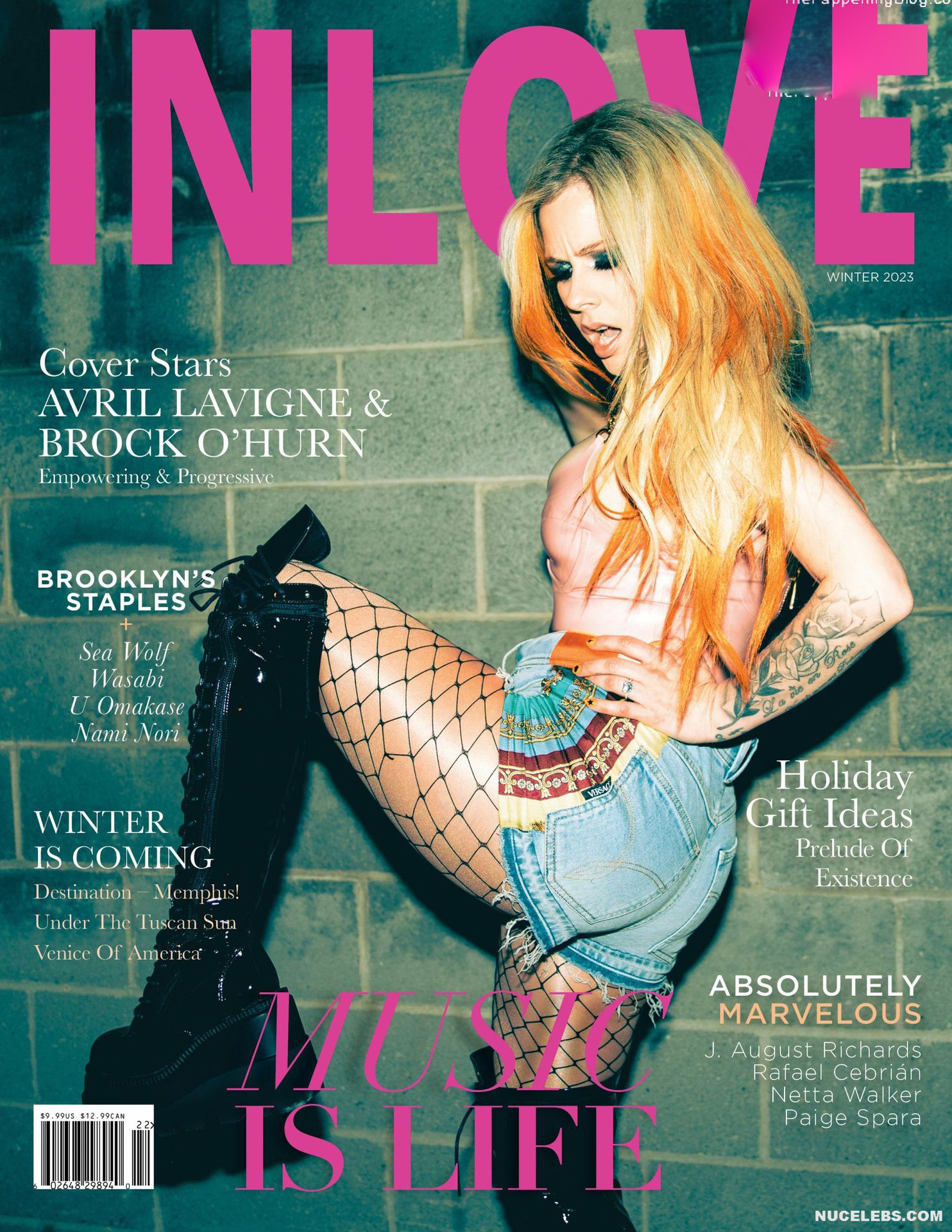 Charming Avril Lavigne looks very sexy on the cover of INLOVE Magazine. Check out the pics of her in black fishnet tights and shorts highlighting her sweet ass. And in some photos of Avril Lavigne nude juicy tits almost jumped out of her pink top, because he was so small! And when this hot blonde straightened her black shorts, her naked boob even slipped out of her black cropped jacket for a moment.