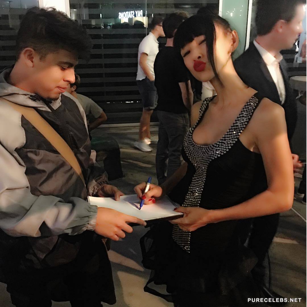 Great looking Bai Ling is very friendly with her fans and never acts like an arrogant superstar who does not even want to touch regular mortals when they ask for a photo or an autograph. It seems like she was in a very good mood recently, because she was posing, sending kisses to cameras surrounding her and showing us her cleavage for a while, knowing what we like the most.