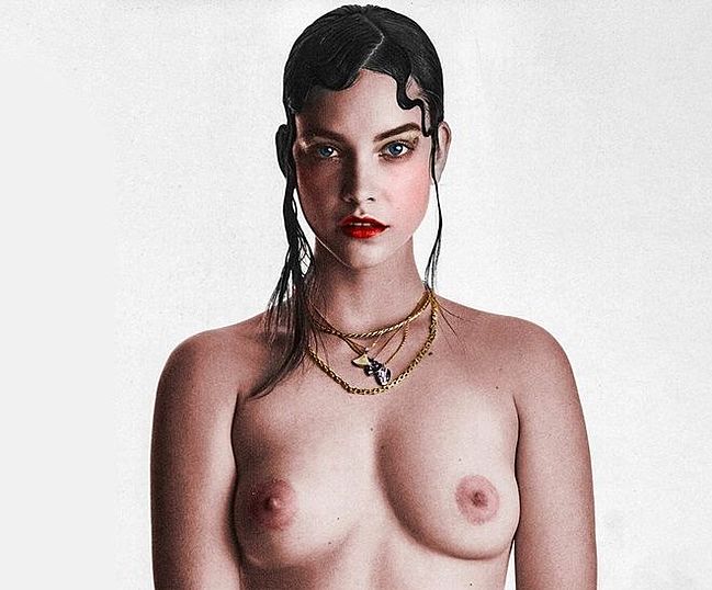 Barbara Palvin is one of the sexiest models in the world and many dream of seeing her nude. I have prepared for you photos of this amazing beauty in lingerie. For example, here Barbara Palvin poses in a black bra and small black panties that barely cover her nude pussy. Also, this celebrity showed off her chic butt in purple thongs, sitting on an armchair. In addition, she also bent down, showing her juicy tits in a purple bra.
