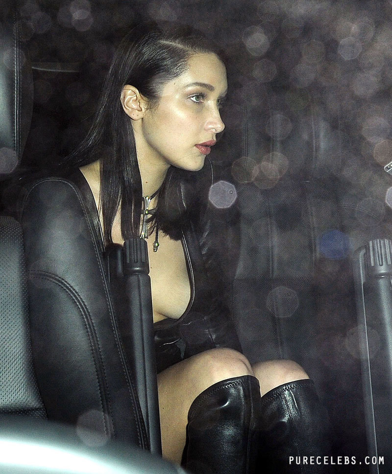Dark haired babe who has American origin called Bella Hadid is a rising star within modeling industry. Wherever she goes paparazzi are there. This time she was about to get out of the car when paparazzi noticed her upskirt moment and didn’t hesitate to snap some photos of it! They also took some side boob photos as well! You will be amazed with this naughty content paparazzi made for you!