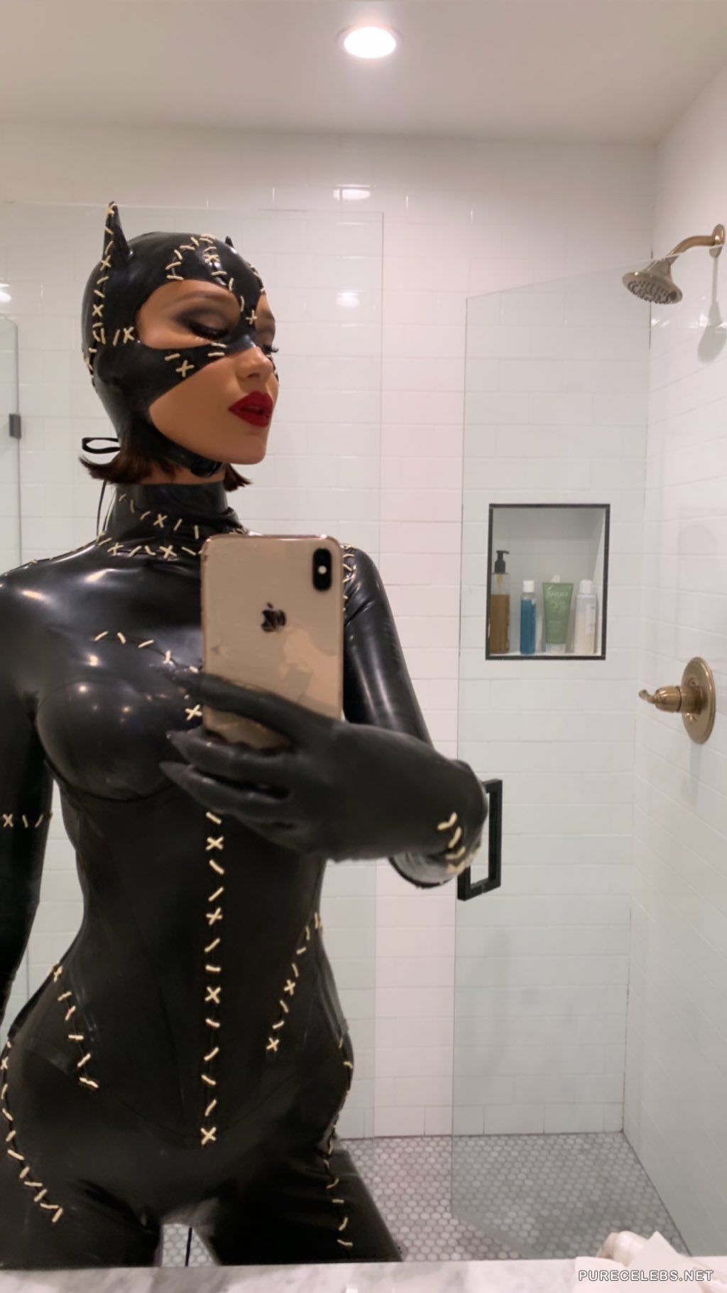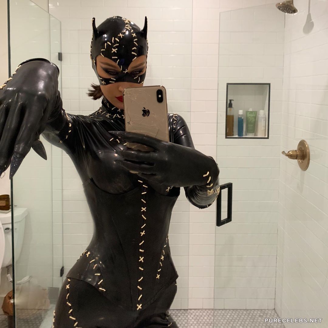 Who would have thought that the American model Bella Hadid would be an incredible Catwomen fan? It was in this image that a celebrity appeared recently and made many sexy and provocative selfies in this costume. It is worth noting that the costume was made of latex and perfectly fit her figure. Her big boobs, narrow waist and delicious ass can drive anyone crazy who sees her! This star knows how to be in the spotlight!