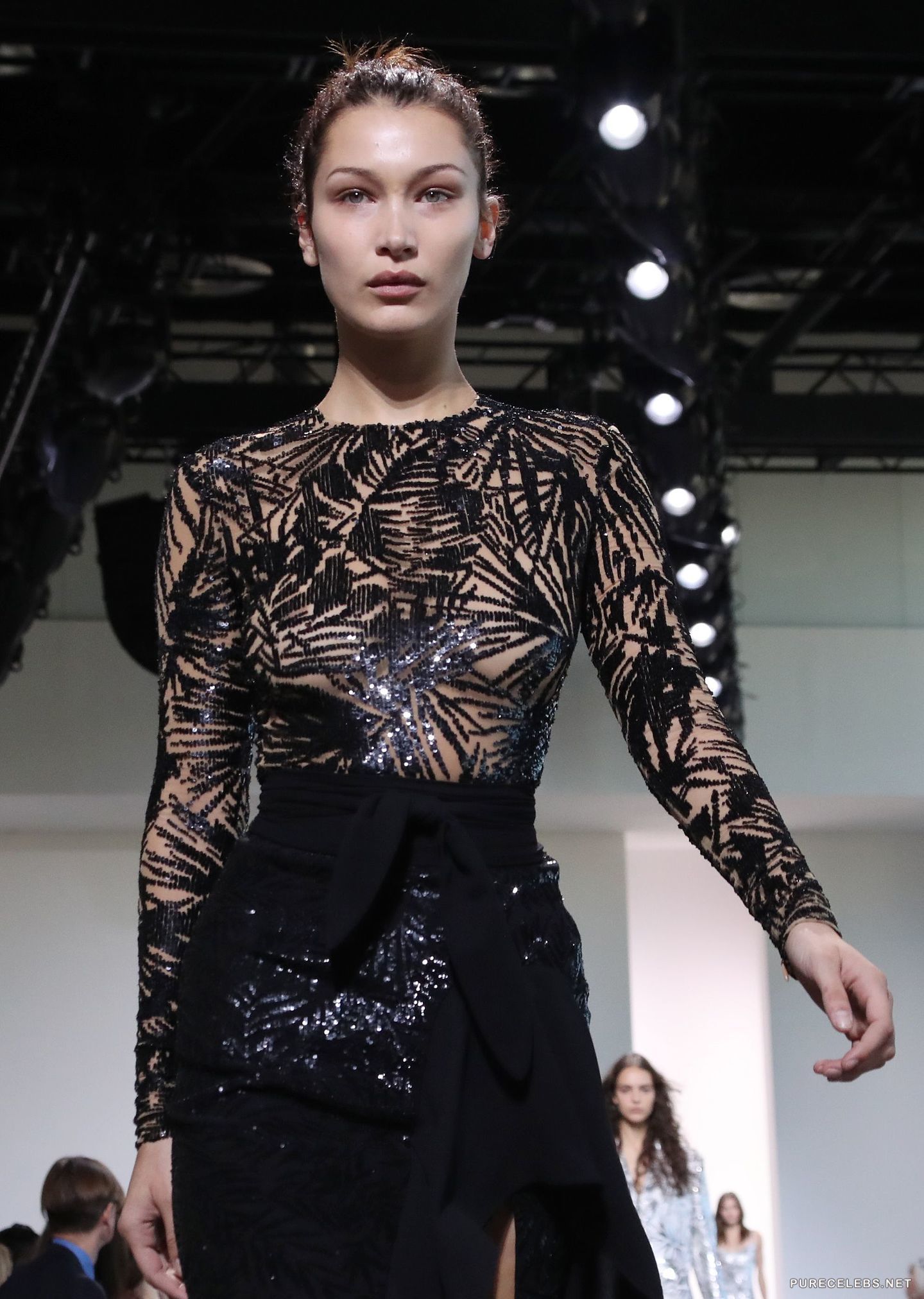 Bella Hadid, the less famous sister of supermodel Gigi is following in her sister’s footsteps and strutting her stuff on the catwalk. This time she was modeling at New York fashion week and the audience was in for a real treat as she proudly paraded a sheer black dress revealing her amazing perky boobs and beautiful curves. We sure hope to see more of this young babes fantastic body in the future.