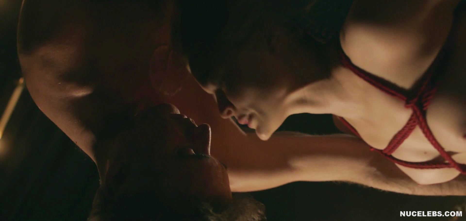 Bella Heathcote starred absolutely nude in Strange Angel. By the way, it is in this TV series that you can see this Australian actress in the BDSM sex scene. The man tied this hot beauty with red ropes and hung her from the ceiling. Then he began to caress Bella Heathcote’s nude pussy, making her scream loudly with pleasure until she came.