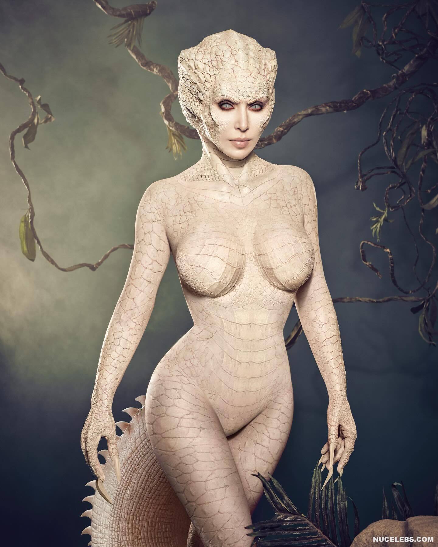 This year, reality star Kim Kardashian went all out, competing with other celebrities in the scale and originality of her costume! Kim transformed herself into an albino alligator. Her costume fits her like a second skin, perfectly highlighting her amazing tits and ass. Agree, she took Halloween glam to a whole new level!