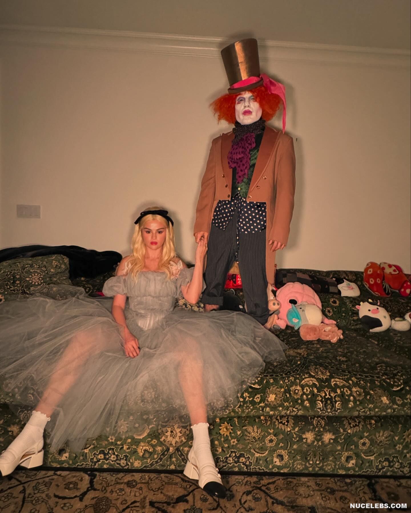 American singer Selena Gomez had a fun Halloween photoshoot with her boyfriend, well-known music producer Benny Blanco. She dressed up as Alice, wearing a light-blue dress, through the transparent fabric of which her slender legs were visible. Oh, Selena Gomez looked damn sexy!