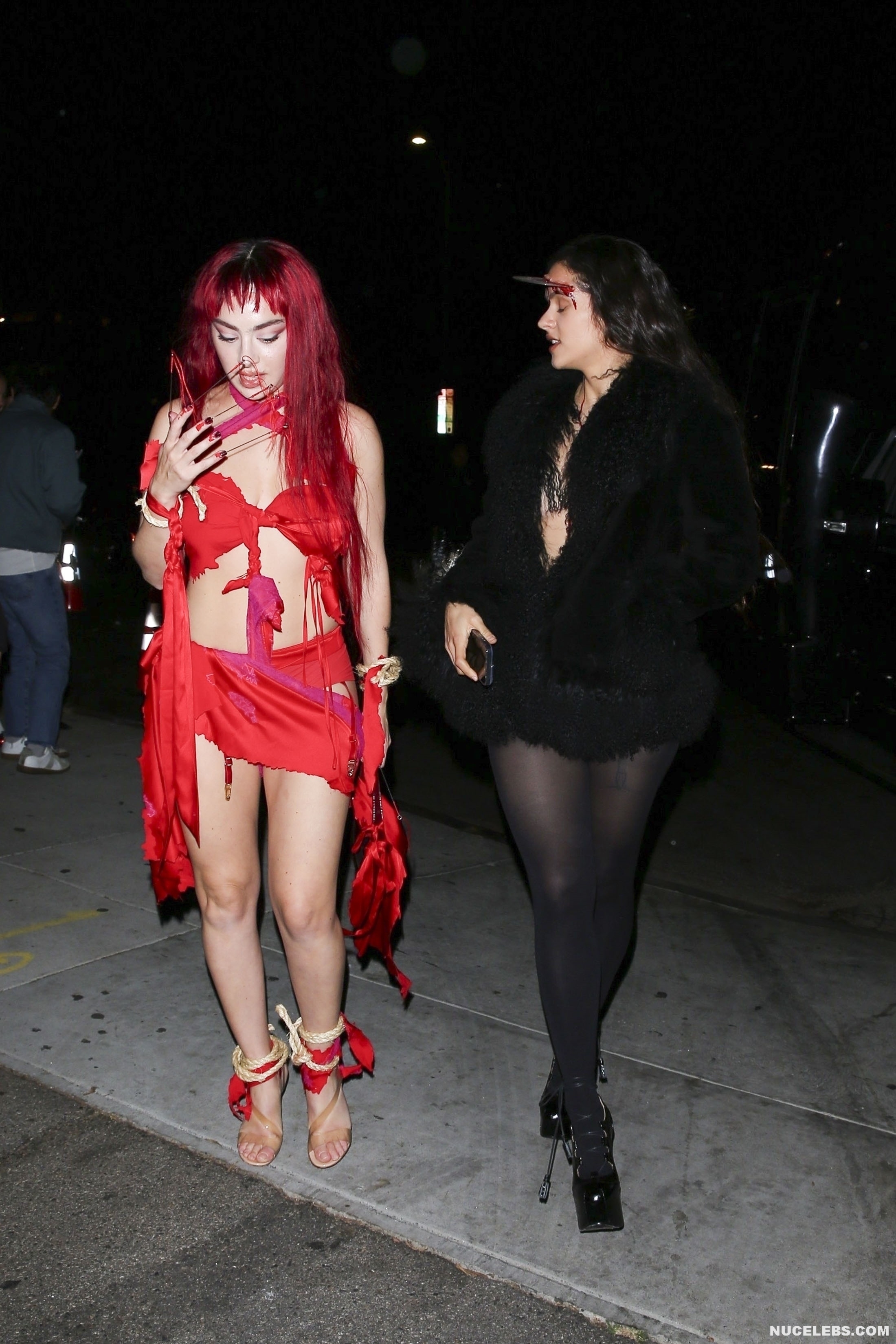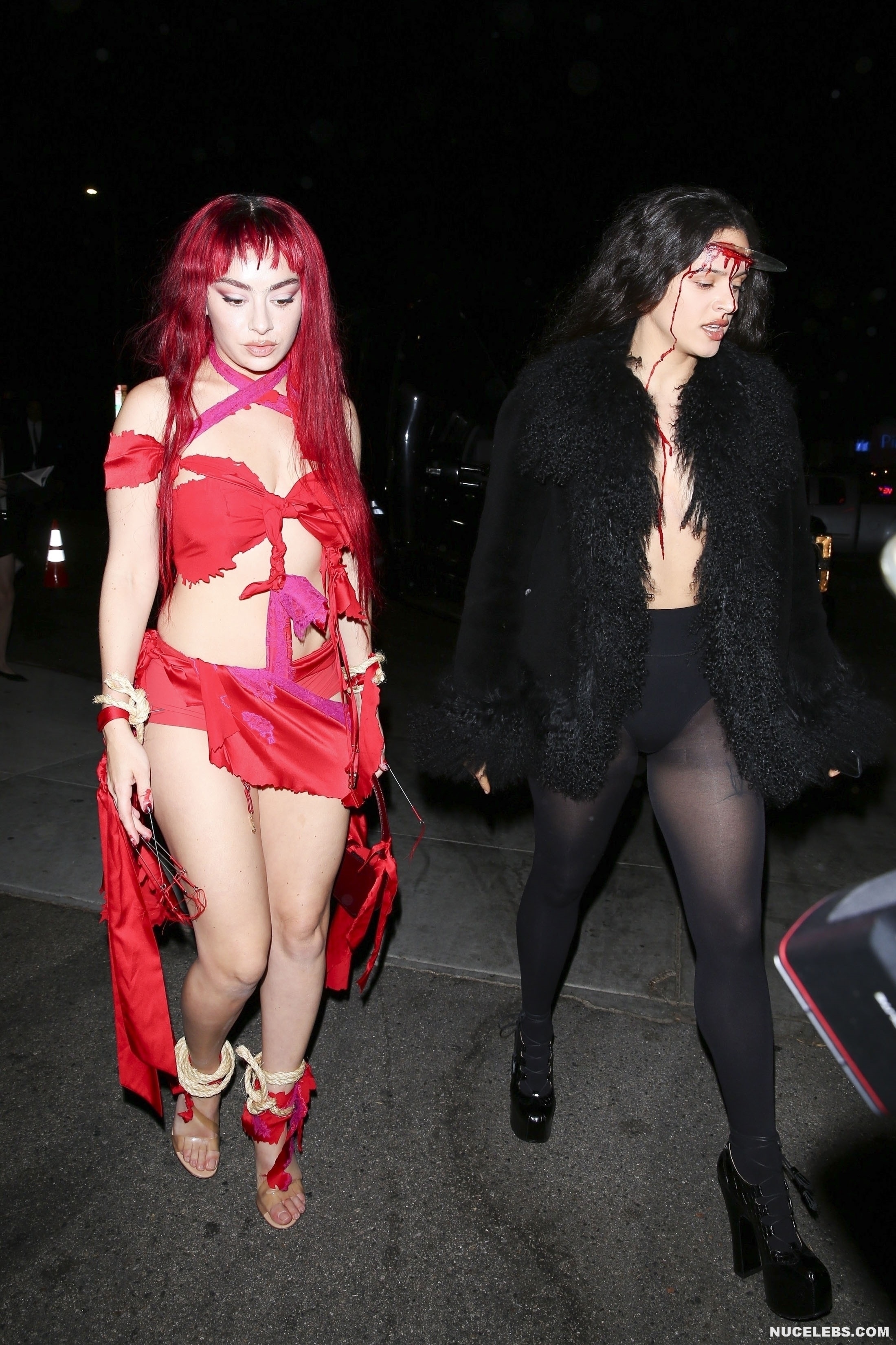 Charli XCX brought major heat to Halloween in her racy red devil costume! She wore a striking red corset and mini skirt. Her outfit was rather skimpy and more reminiscent of a bikini, showing off her curves to great advantage. Long red hair and bright makeup added the perfect devilish touch. Wow, this singer looked stunning, didn’t she?