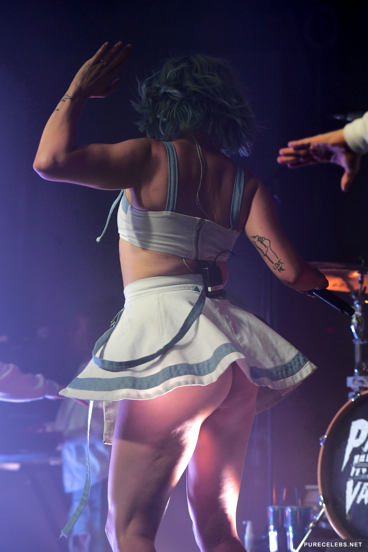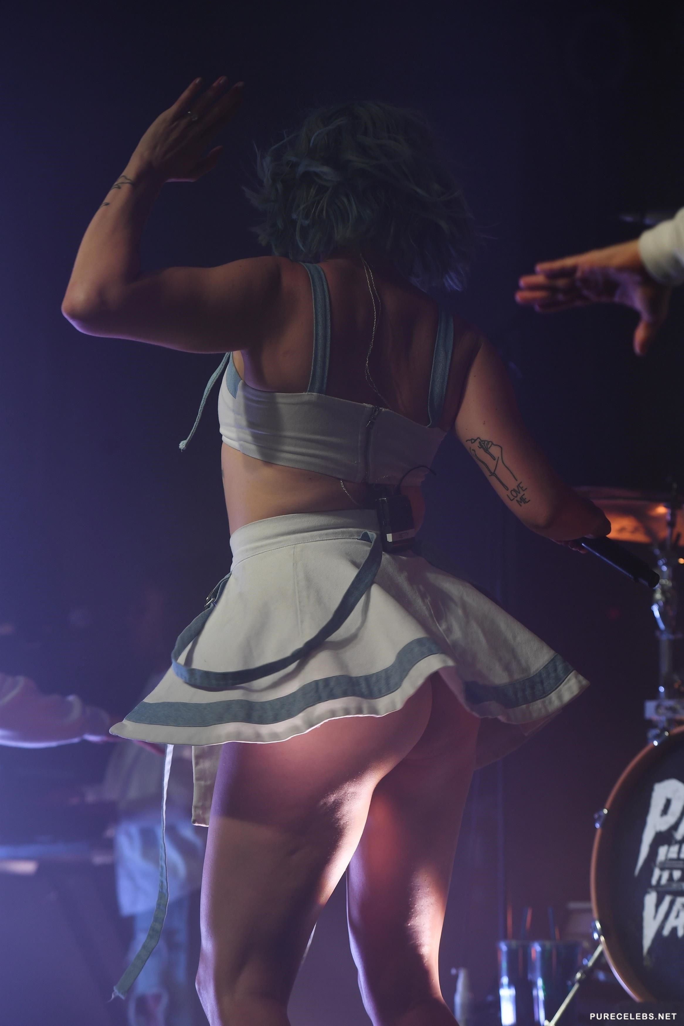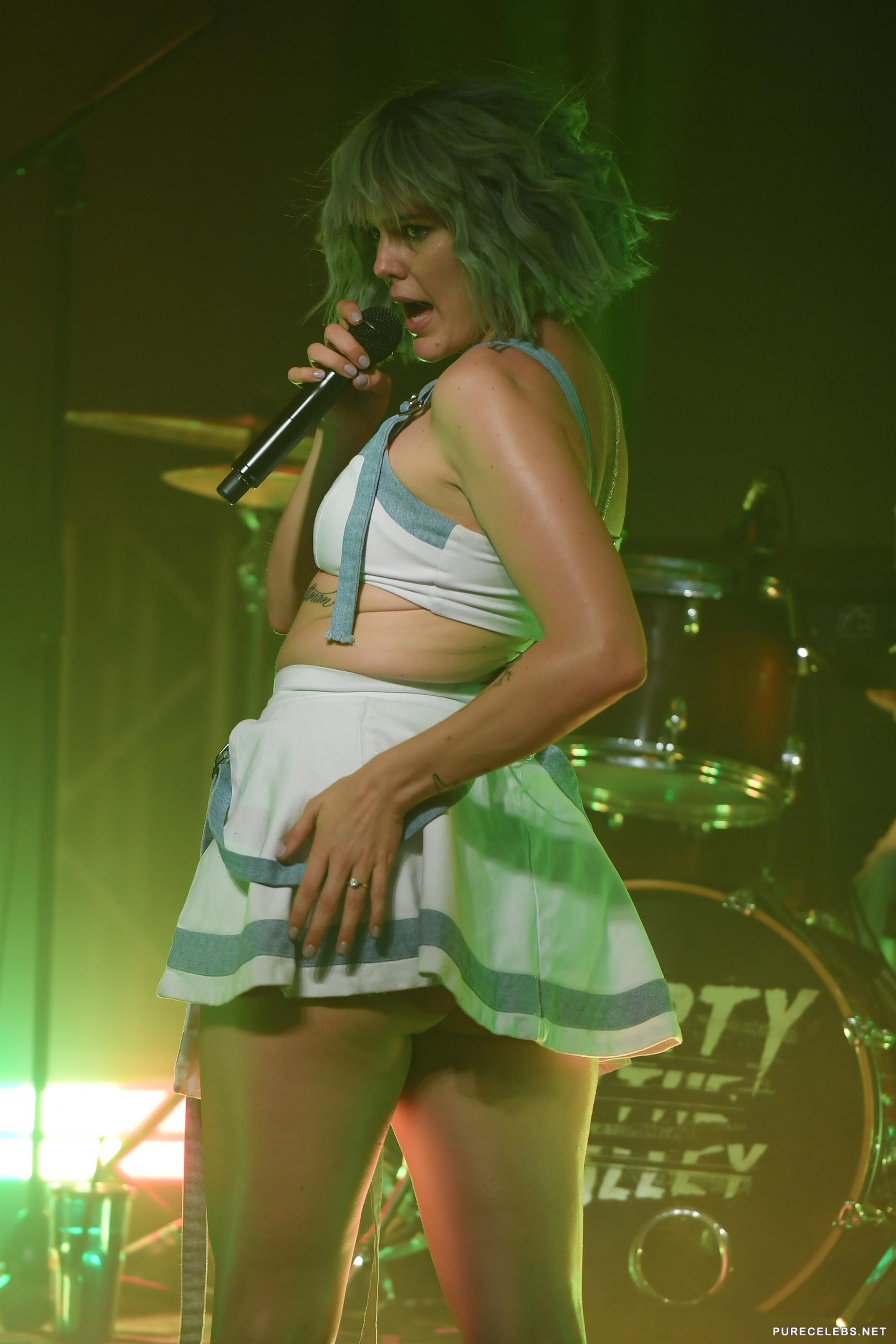 Betty Who did a quite a performance on her last concert. Fans were treated with a sight of her in white tank top and really short skirt that constantly was exposing her white panties as she performed. Being so, her camel toe was clearly showing, so the fans in the front row really enjoyed the view of her bald snatch and her tight shapely ass and legs.
