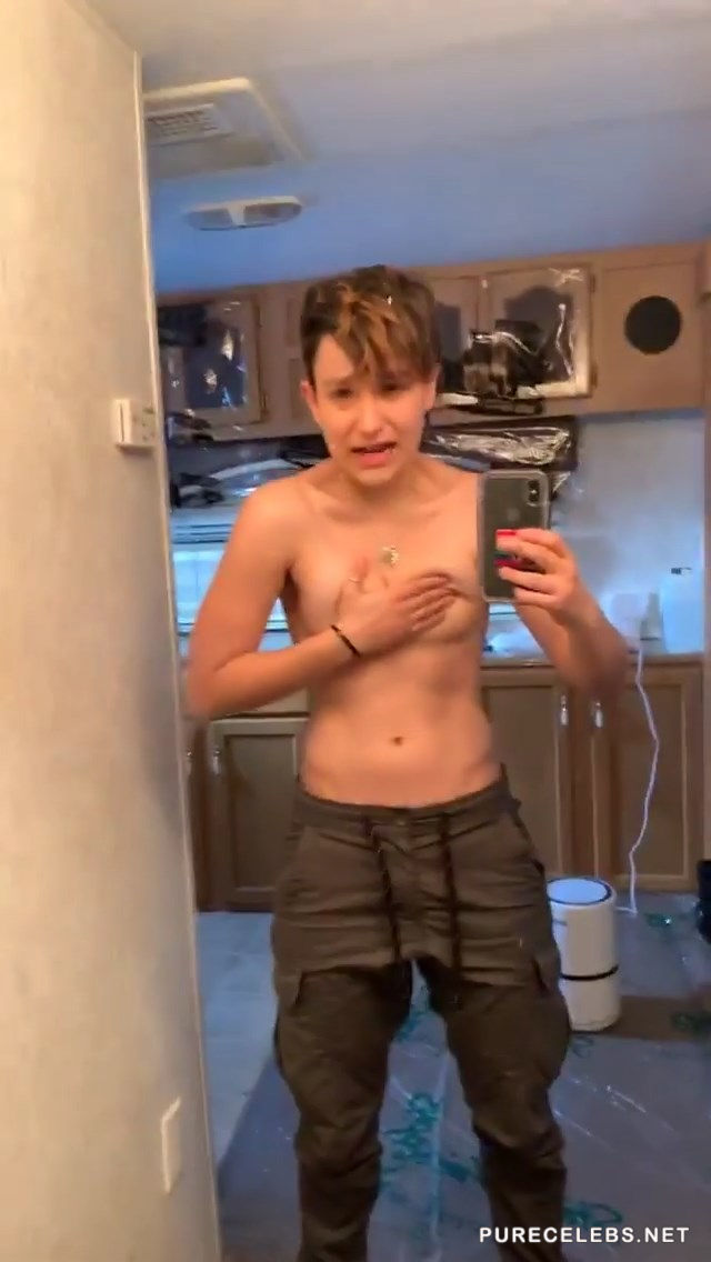 Bex Taylor-Klaus is showing her tits in front of the mirror, taking selfies and posing like that all over the house, just because it feels so good. This slutty brunette likes to come make an impression and although she does not do it often, once she does, everyone remembers it. Now, let’s go back to these private photos and those tiny titties, displayed for us in a new photo gallery.