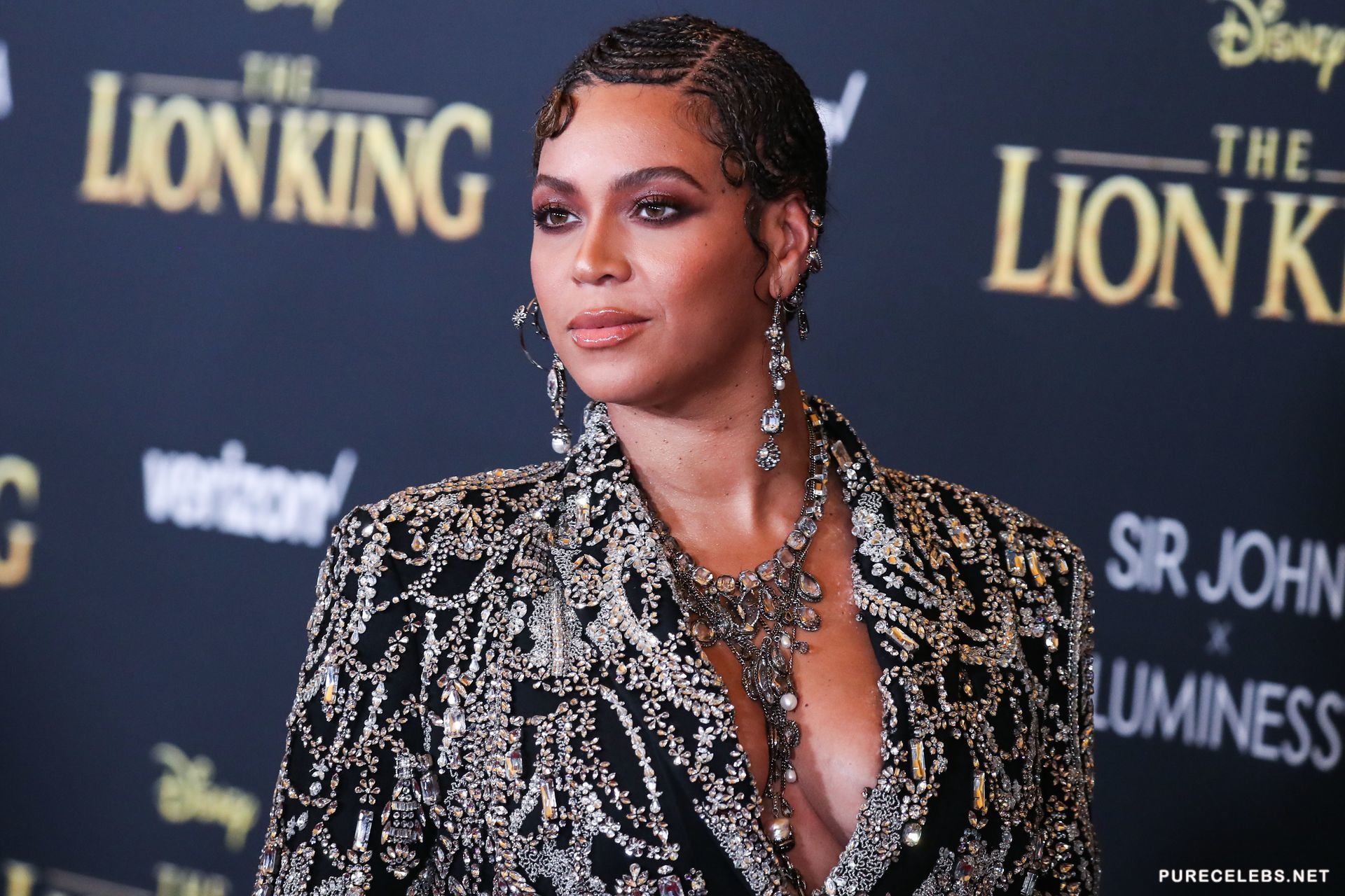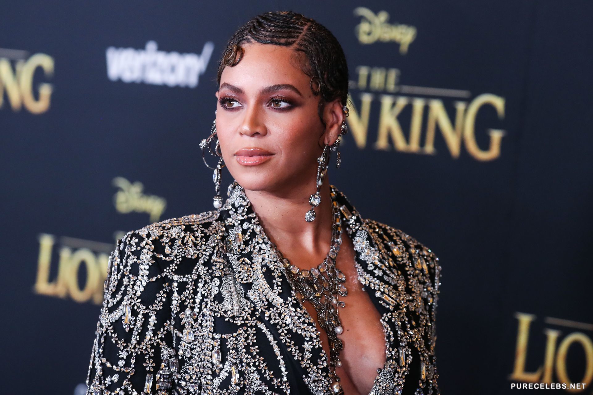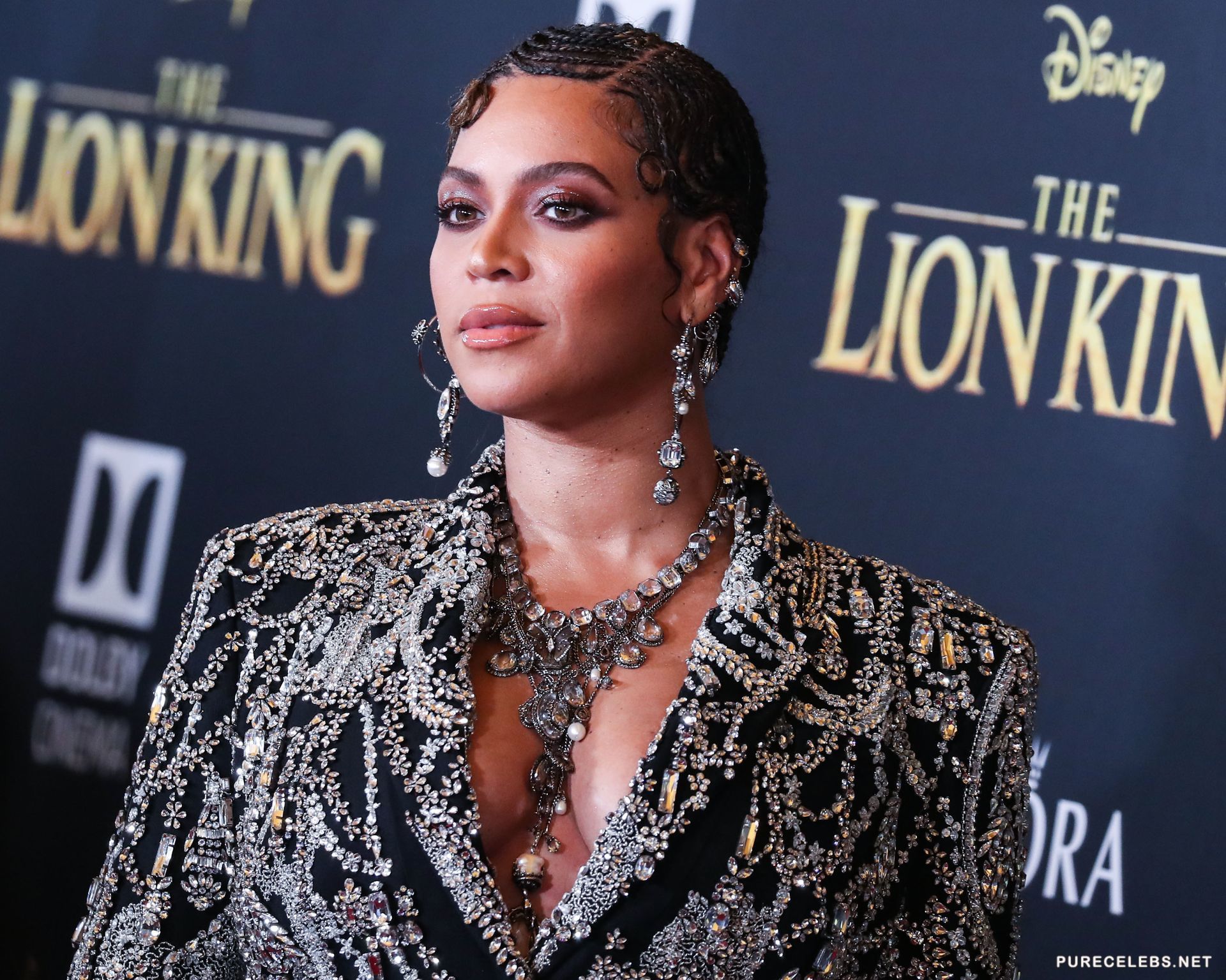 Not so long ago, the American singer Beyonce arrived at an event, in a very extravagant outfit. Hot beauty made herself an unusual hairstyle from a multitude of small braids and bright make-up. The star was wearing a black jacket, embroidered with rhinestones, which demonstrated her great cleavage. In some photos, you can even see the areola of her nipple, which slipped out of the deep neckline of the jacket.