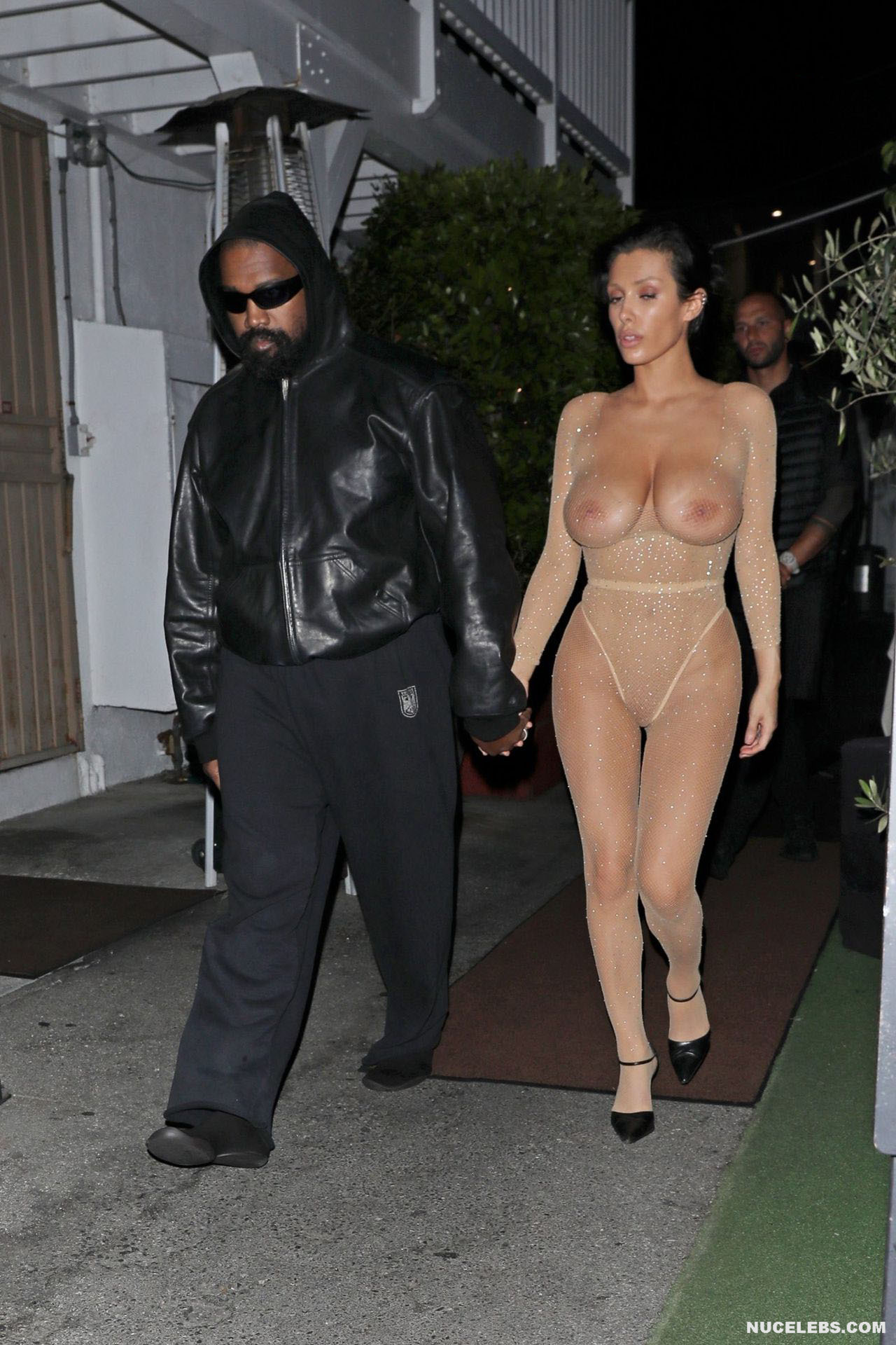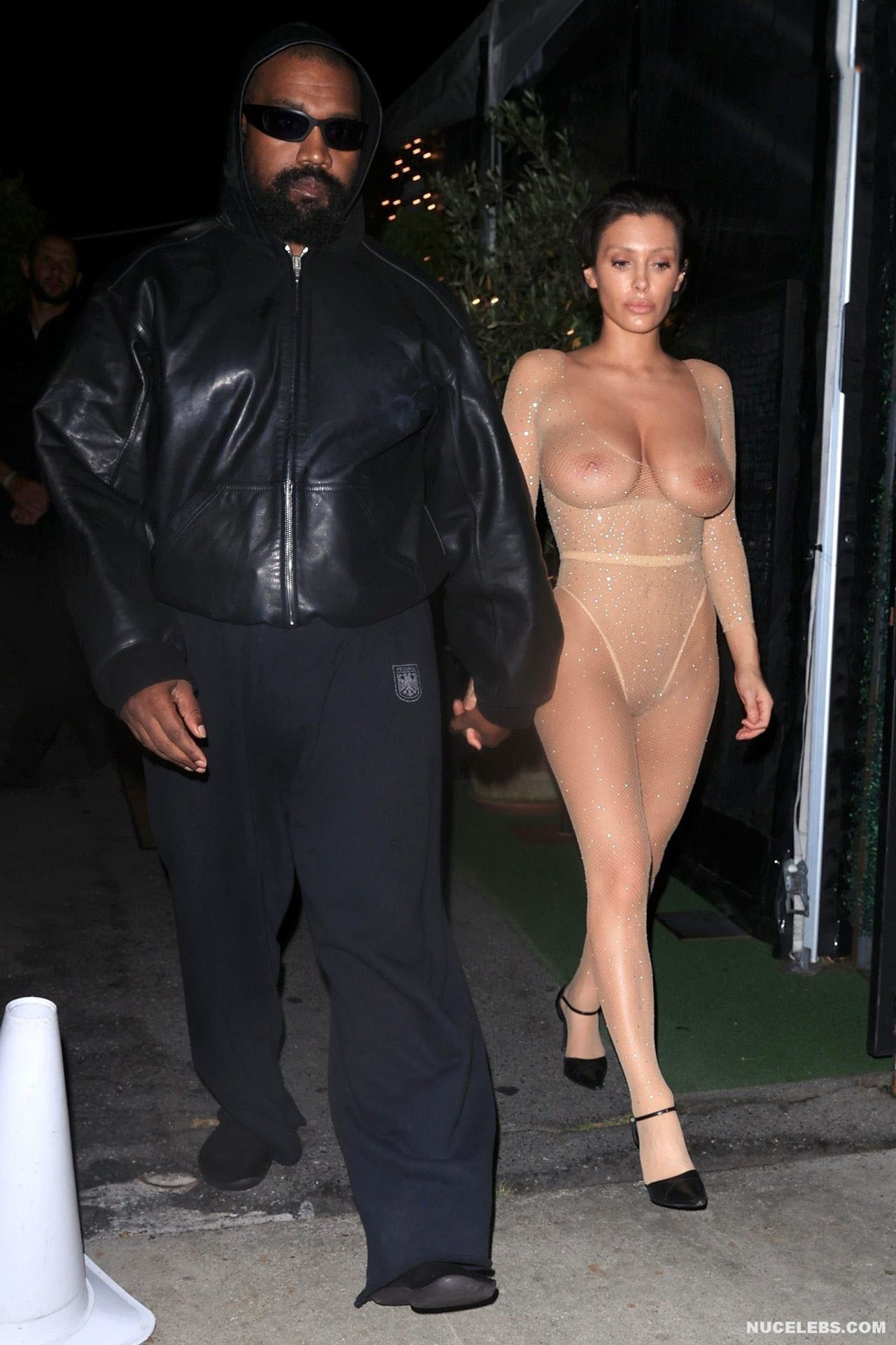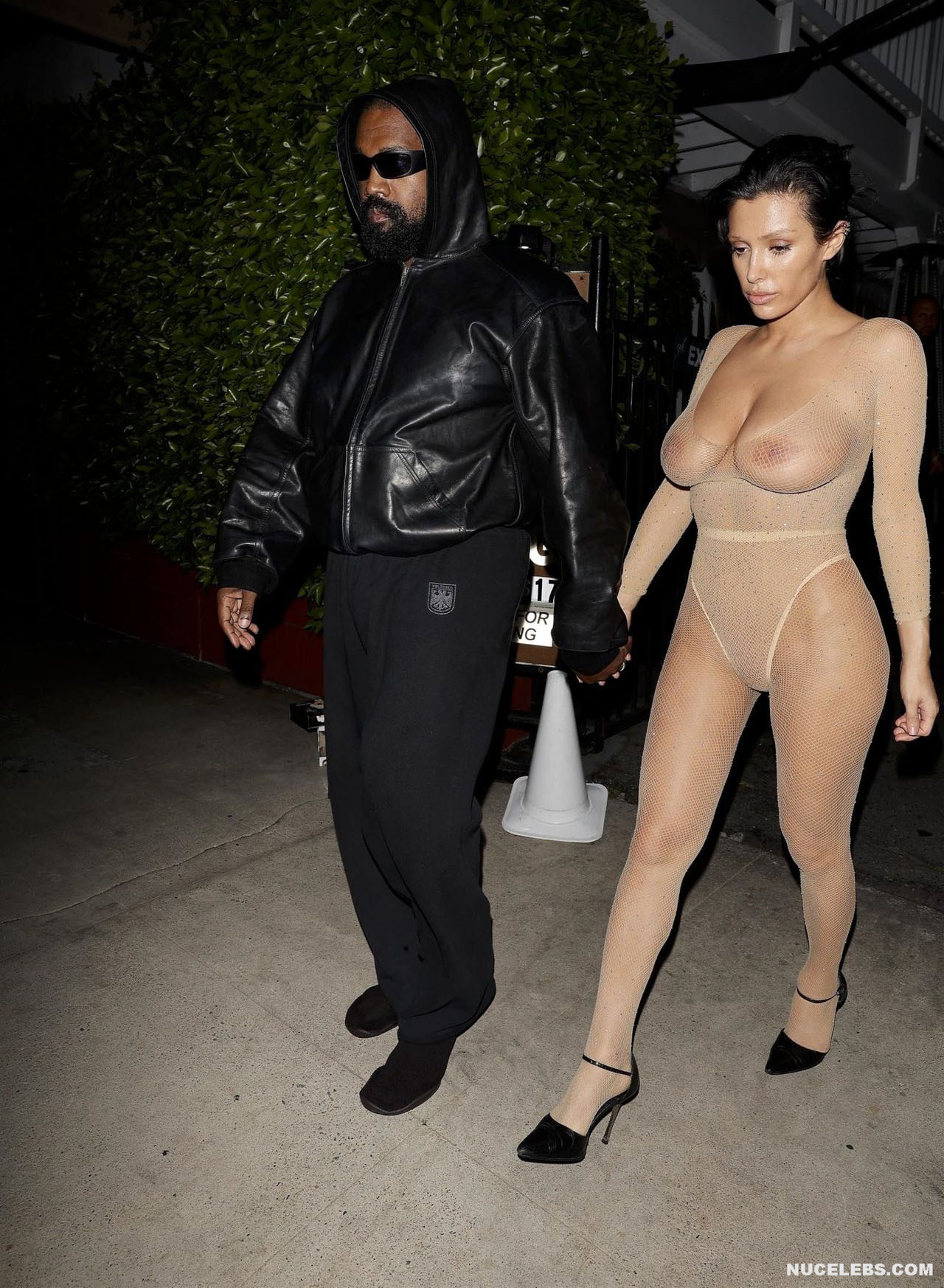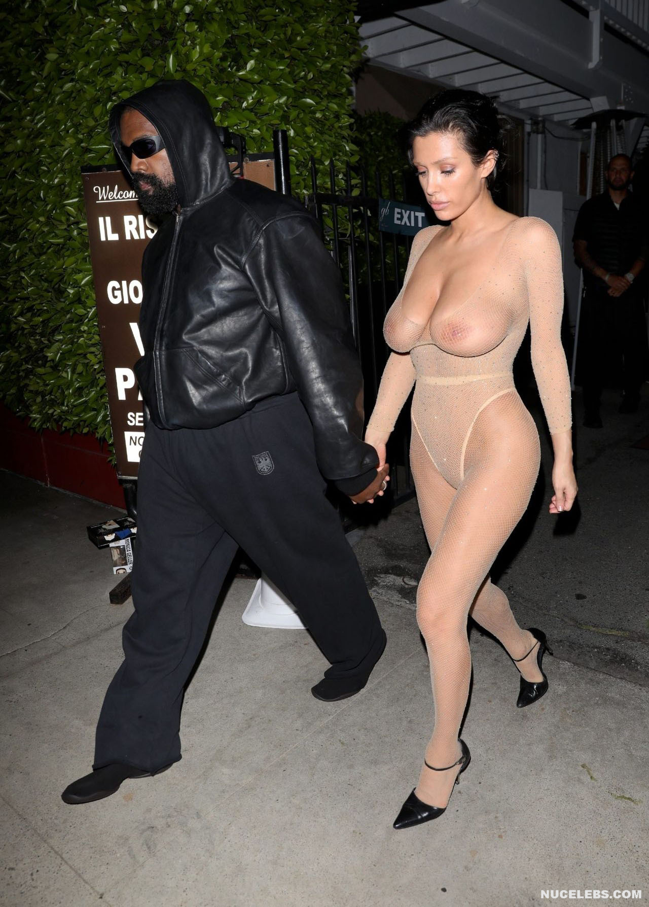 This time we will talk about Bianca Censori again, who loves to flaunt her naughty bits. And she does it publicly! This time her outfit consisted of a transparent mesh beige jumpsuit and black stiletto heels. Bianca Censori nude boobs seemed simply huge in a tight jumpsuit. At the same time, this beauty still decided to at least cover her pussy a little, so she still put on beige panties under the jumpsuit.