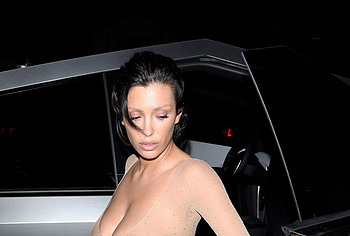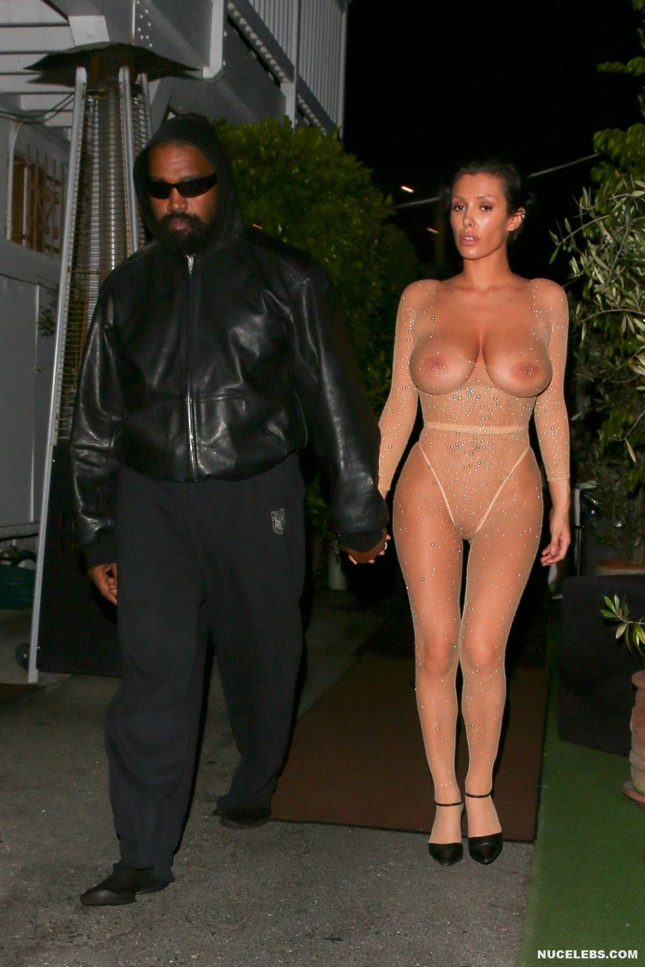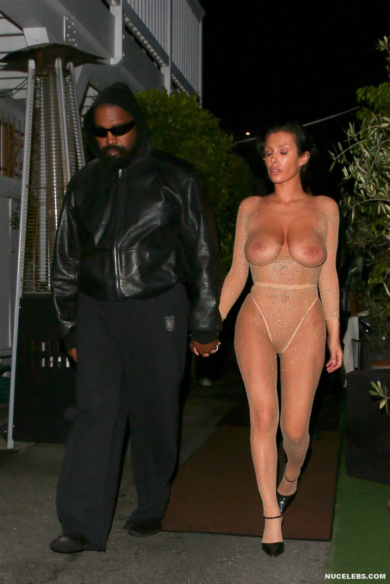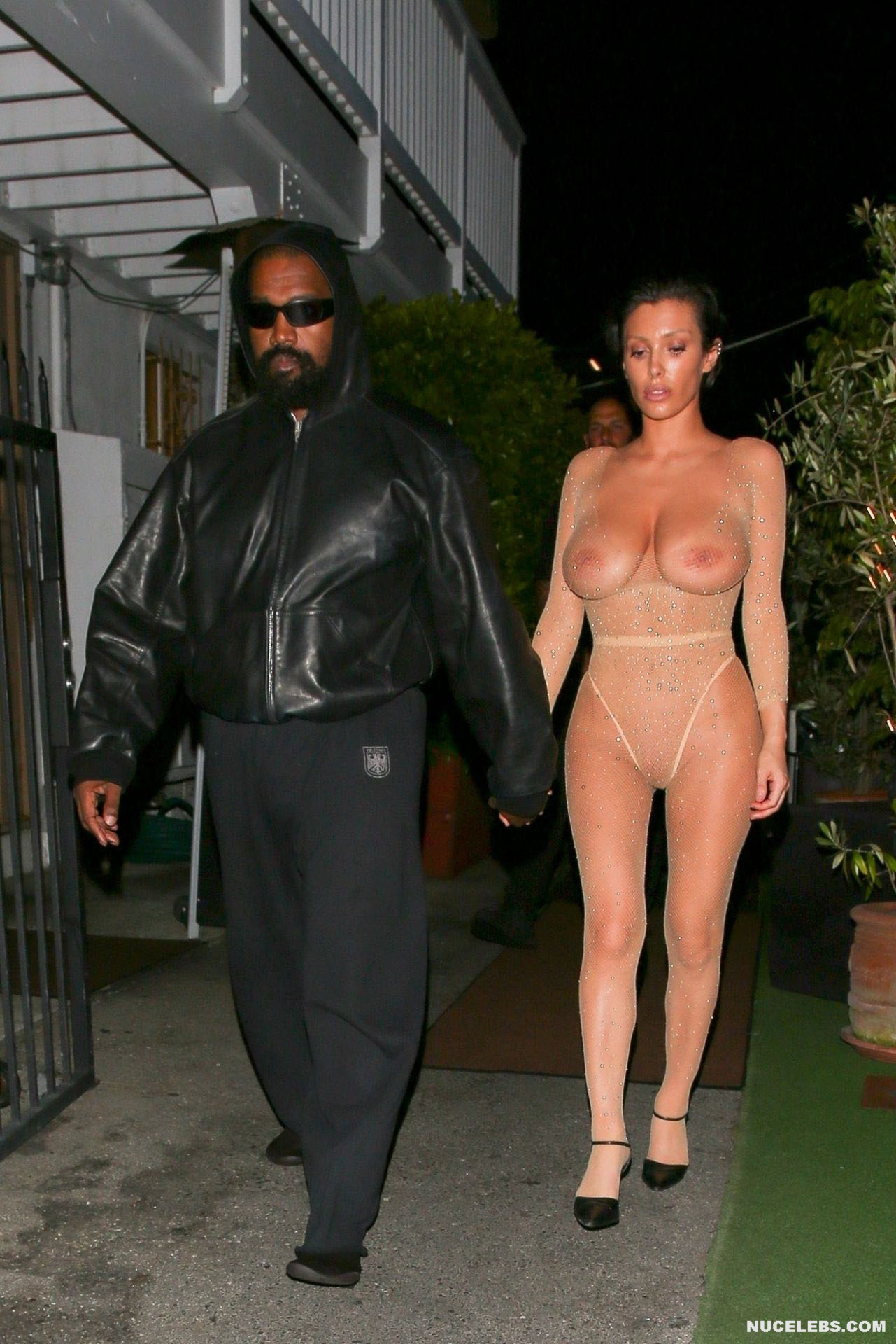 This time we will talk about Bianca Censori again, who loves to flaunt her naughty bits. And she does it publicly! This time her outfit consisted of a transparent mesh beige jumpsuit and black stiletto heels. Bianca Censori nude boobs seemed simply huge in a tight jumpsuit. At the same time, this beauty still decided to at least cover her pussy a little, so she still put on beige panties under the jumpsuit.