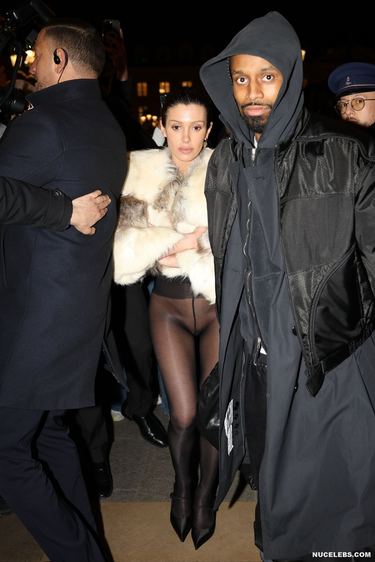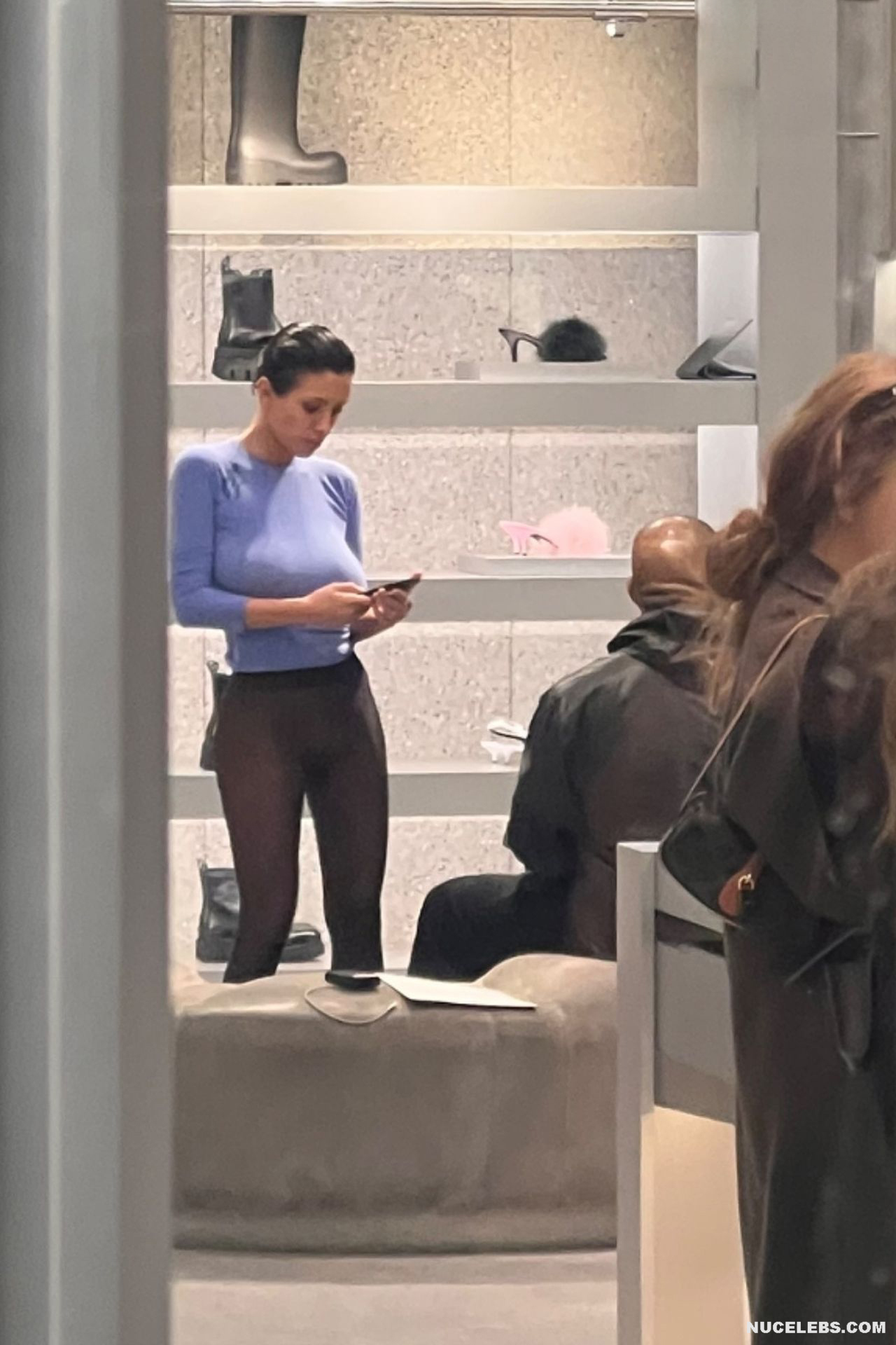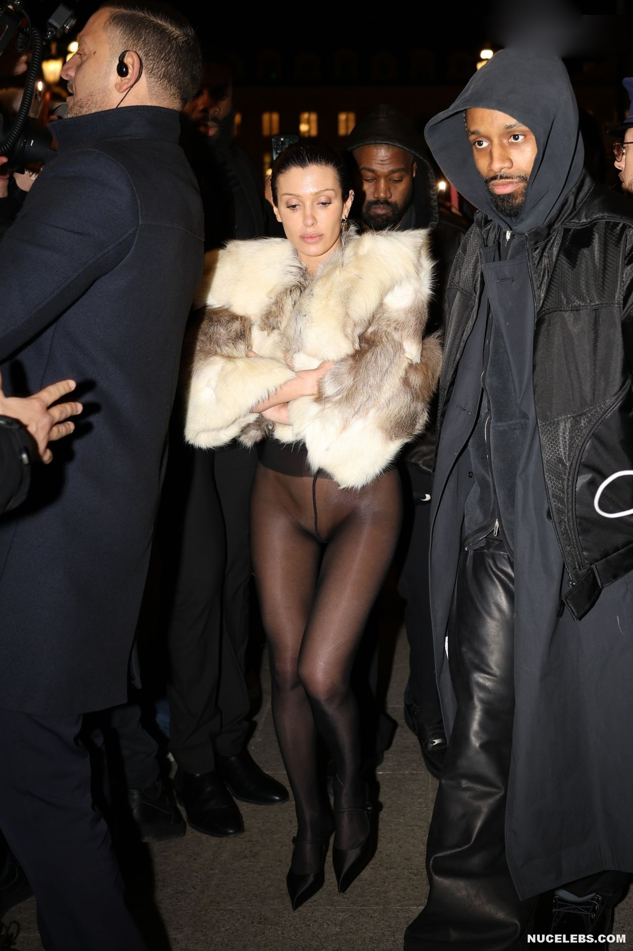 Bianca Censori often appears in public in see through outfits, flaunting her nude big tits. However, recently this celebrity has outdone herself! So, this beauty was dressed in blue golf, through which her juicy melons with poking nipples were visible. Also, Bianca Censori flaunted her nude pussy in sheer black pantyhose! It looks like she deliberately didn’t wear underwear to attract even more attention from the public!