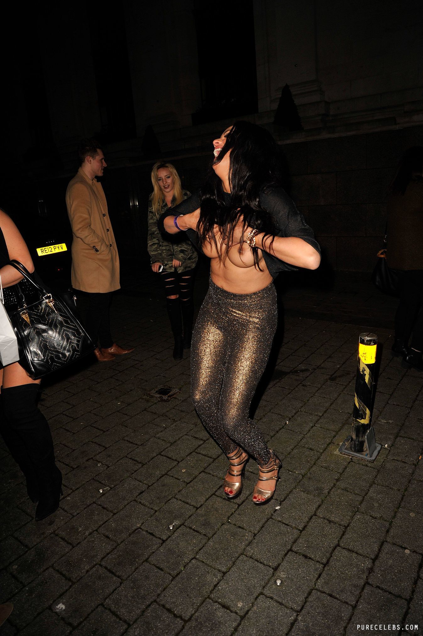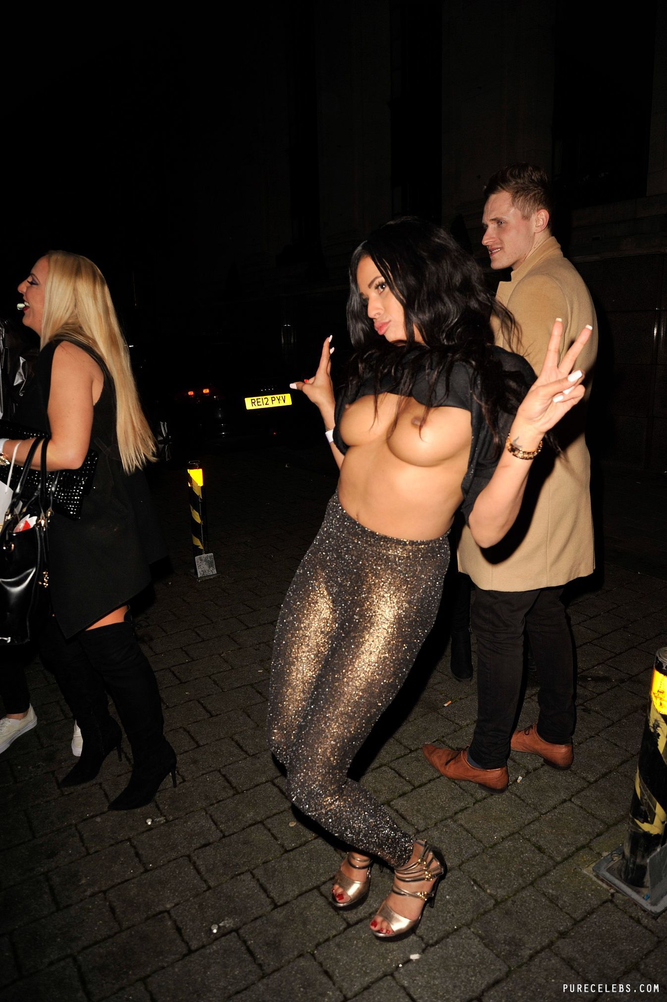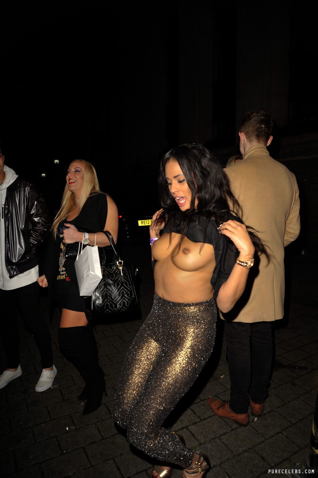Big Brother’s Biannca Lake loves to tease the audience with his nude body. This hot brunette is absolutely not shy about appearing in public in very provocative outfits. For example, this celebrity was spotted in a black blouse and tight-fitting silver pants. And suddenly she raised her blouse up, which was very unexpected, but very sexy. So Biannca Lake showed her nude boobs with hard nipples outdoors.