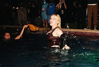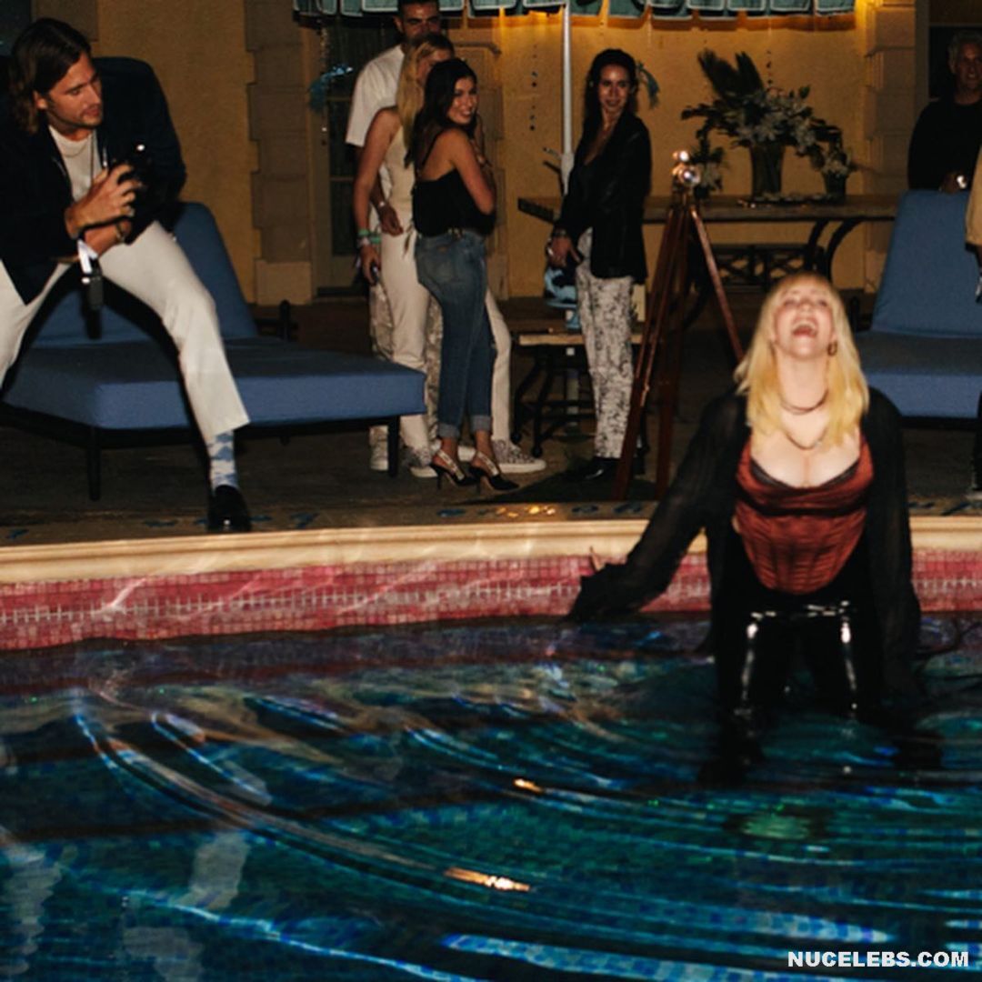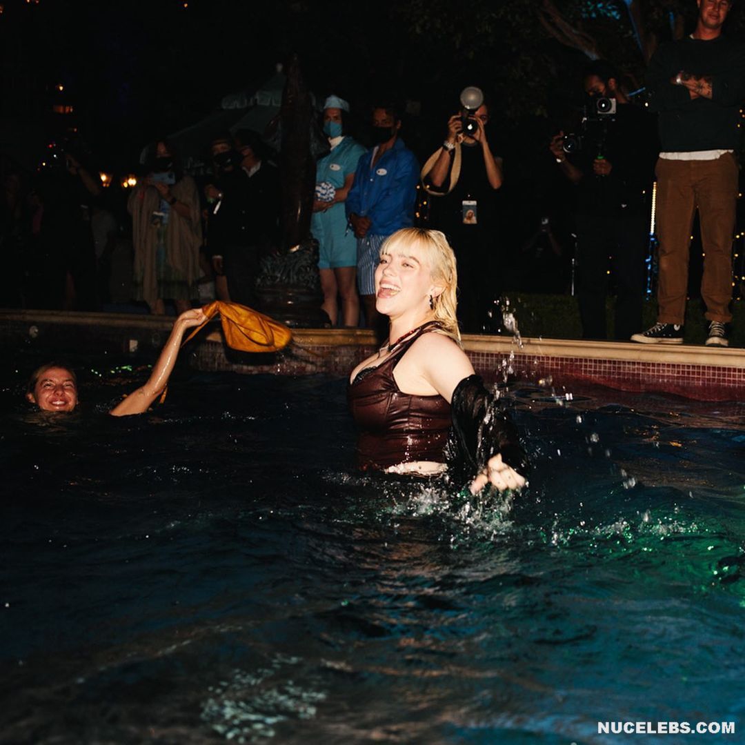 American singer Billie Eilish has many ways to gain public attention. And for this Billie Eilish doesn’t even need to show parts of her nude body. For example, at one of the parties, this celebrity swam dressed in the pool. That being said, her boobs looked huge in her wet black lace bra! It’s a pity that this star didn’t take off her wet clothes right in the pool. After all, then everyone would be able to admire Billie Eilish’s nude boobs.