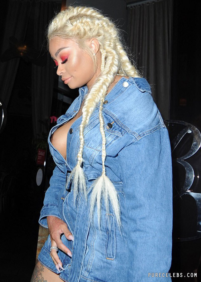 The American model Blac Chyna sometimes gets into embarrassing situations and flashes her nude breasts. So, the paparazzi managed to catch this chic blonde in an unbuttoned denim jacket. Since the beauty did not wear a bra, her naked tits with hard nipples were visible from the open jacket. And it was very hot and sexy, right?