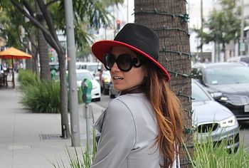 Recently snaps of Blanca Blanco upskirt moment were leaked for the great pleasure of her fans. The stunning actress decided to walk down the street and pose for her private photos. She was wearing a short gray dress, black hat and black sunglasses, making her look sexy and beautiful. Blanca crouched down to take a selfie on her phone and we can see her red panties with pretty pussy between her slim legs.