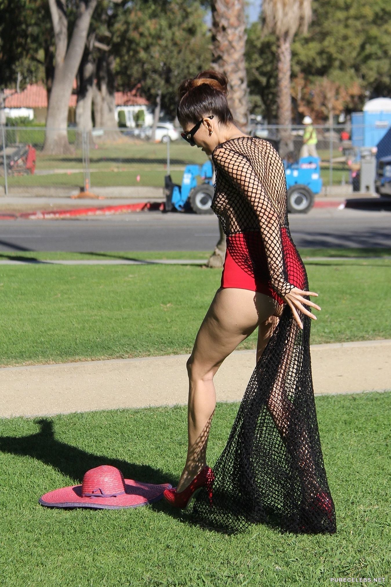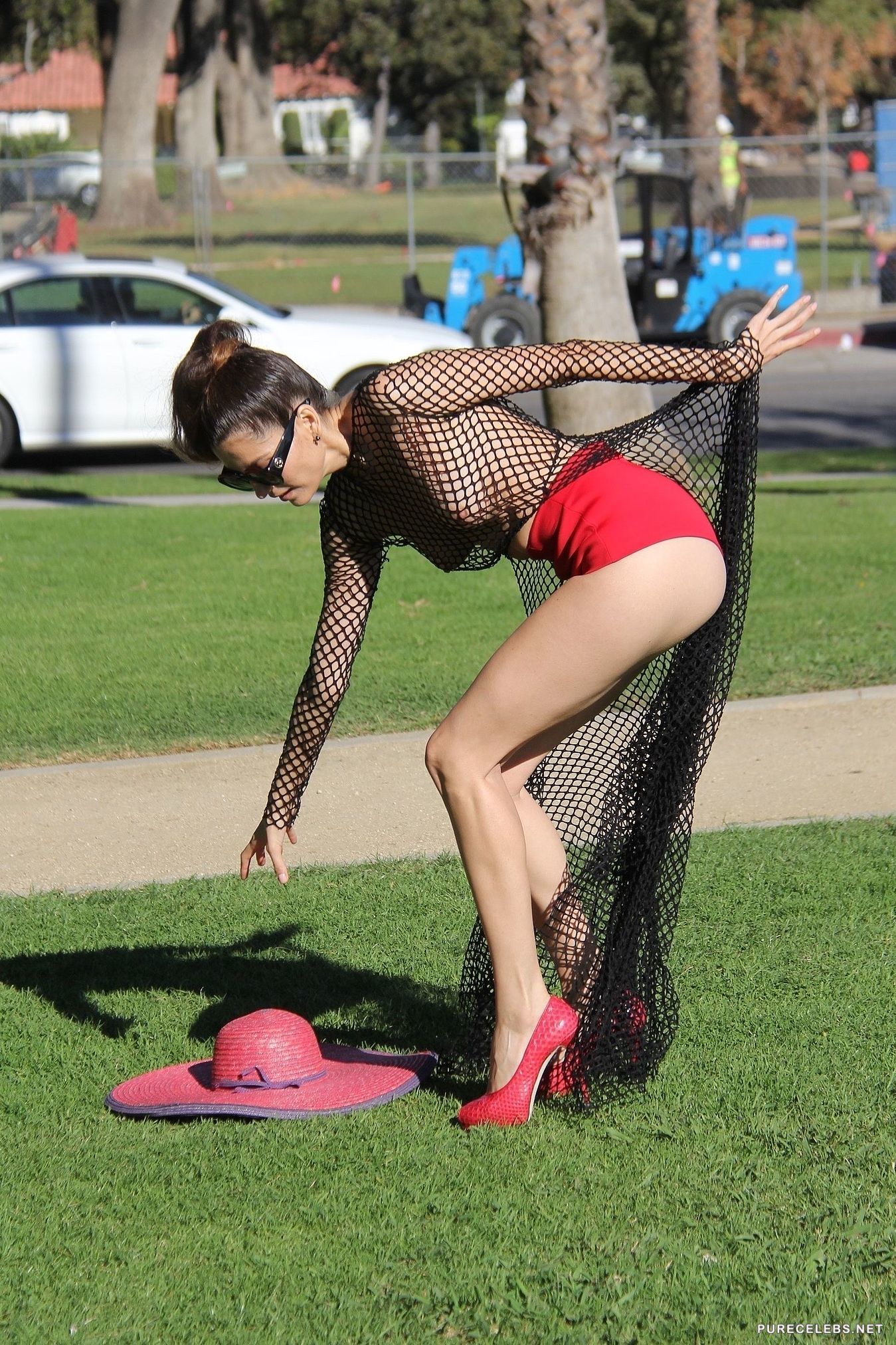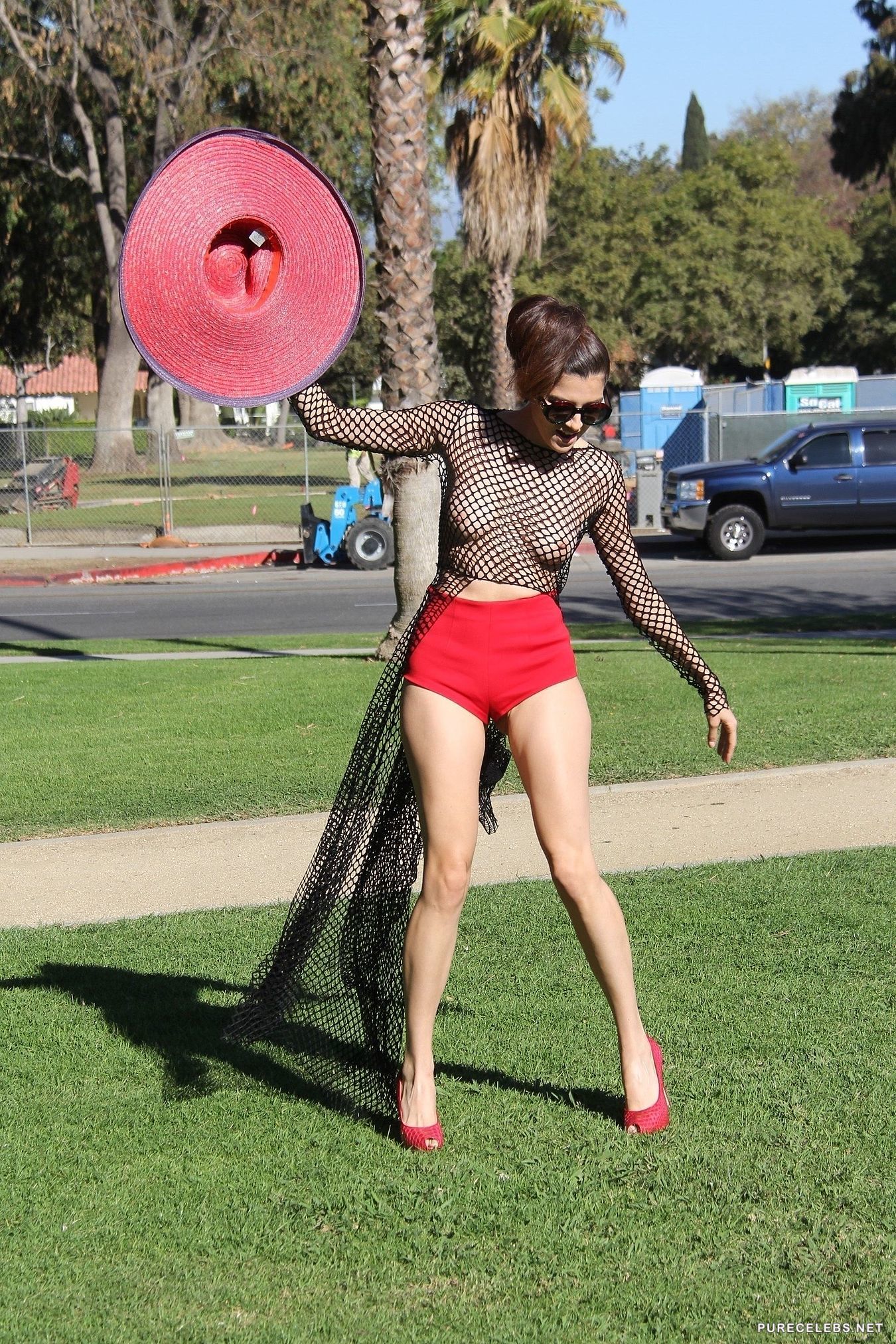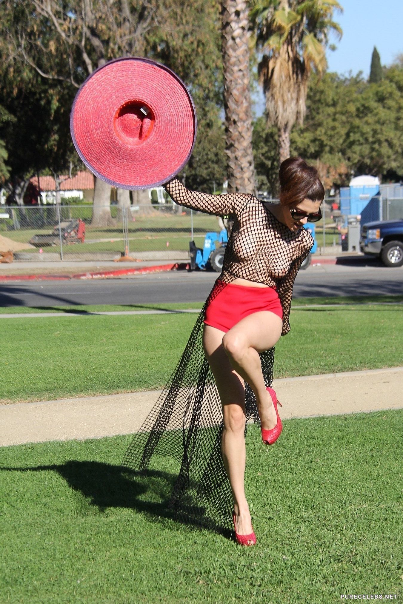 Blanca Blanco is no stranger to being in front of the camera. This gorgeous babe flashed her tits for the cameras of reporters when she was caught in a see through dress and miniature red shorts. The brunette struggled to keep her large hat on her head on this windy day. And reporters struggled to get the perfect photo of her amazing natural tits and tight ass.