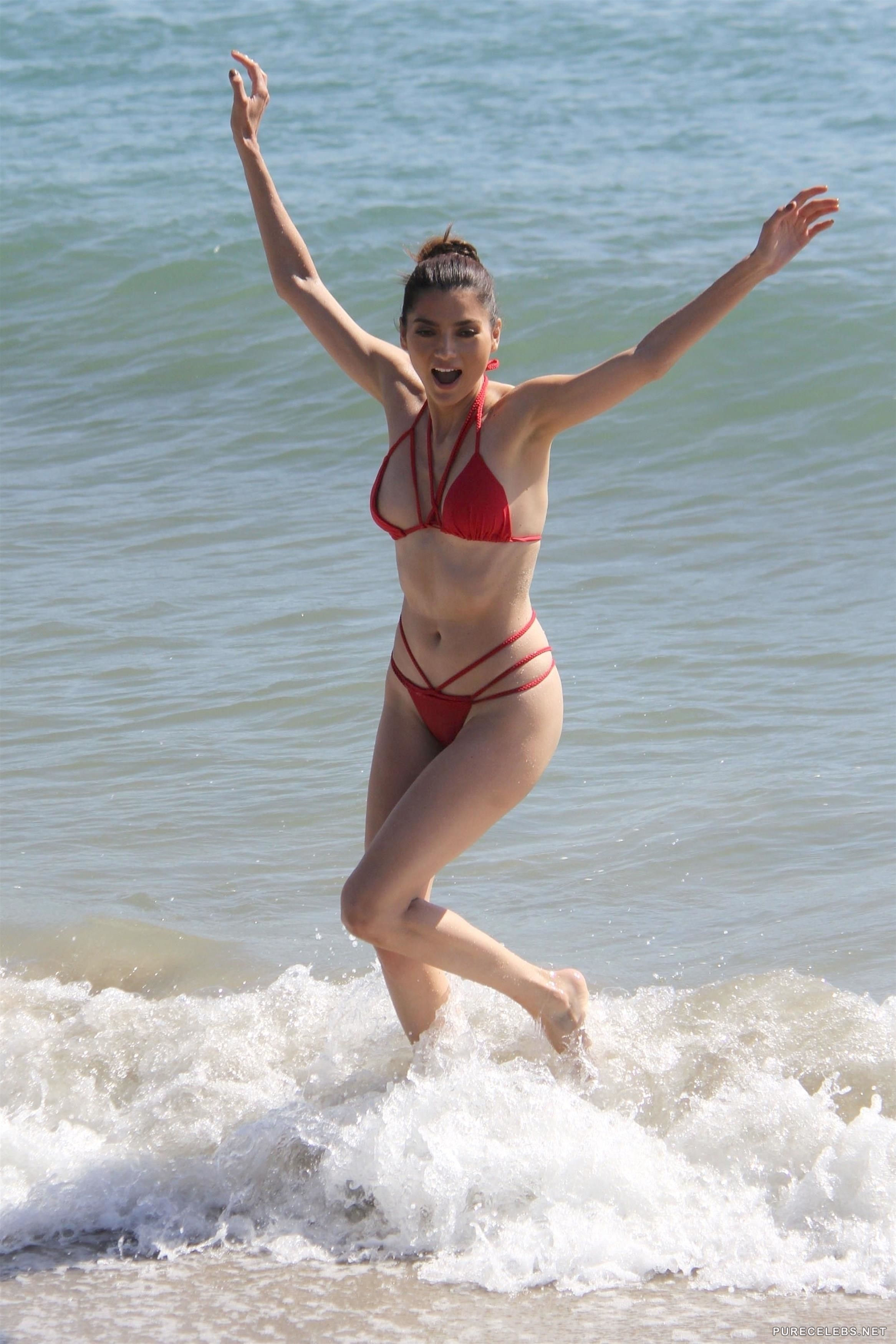 Curvaceous American actress, Blanca Blanco looks great in a red bikini that perfectly hugs her hips and it seems that she hasn’t tied the top good enough, since it was a bit loose and revealed one of her boobs more than she has planned. Hoping that no one saw it, she must have been very surprised when she came home to see her nipslip photos all over the Internet.
