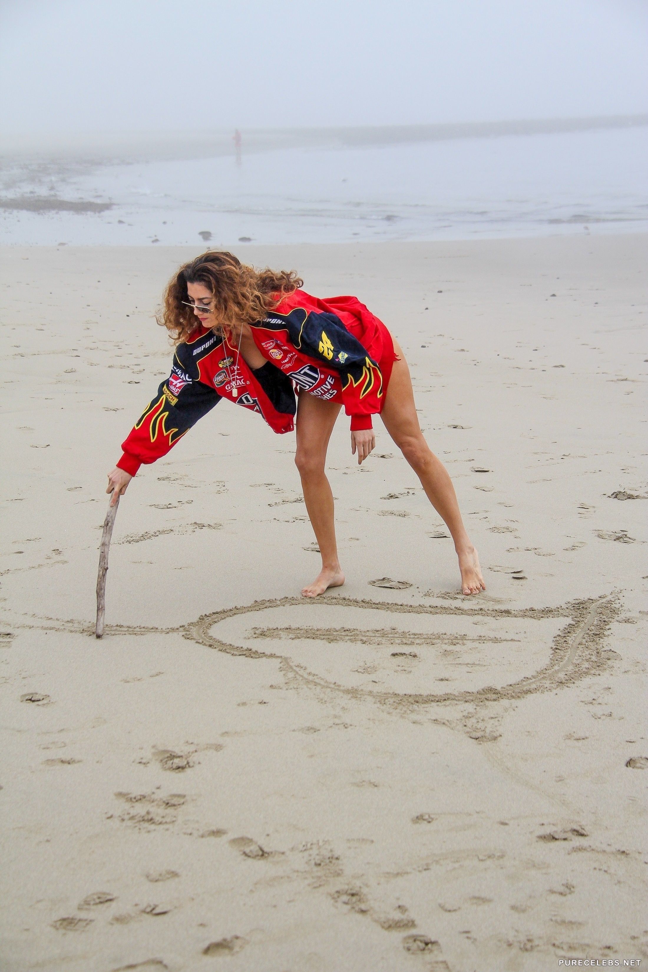 Blanca Blanco comes from sunny California. She is an actress, producer and writer, but also a model. As she often enjoys to go bra-less or completely topless, paparazzi have plenty of opportunities to catch her on camera, as she obviously doesn’t mind that. This time she is on the beach, enjoying herself, showing us that perfect shapely posterior and her natural perky boobs and she walks around and enjoys breeze on her bare skin.
