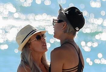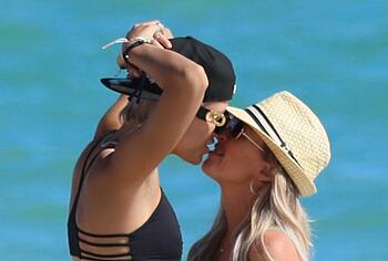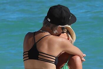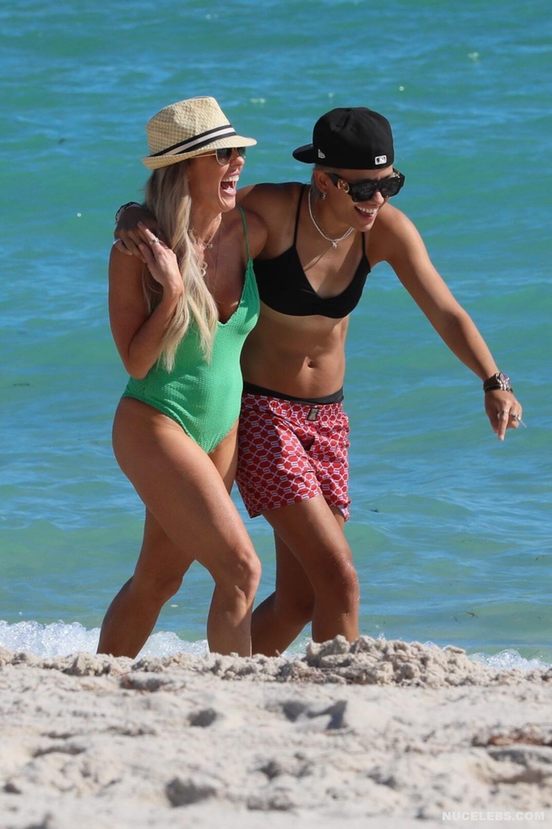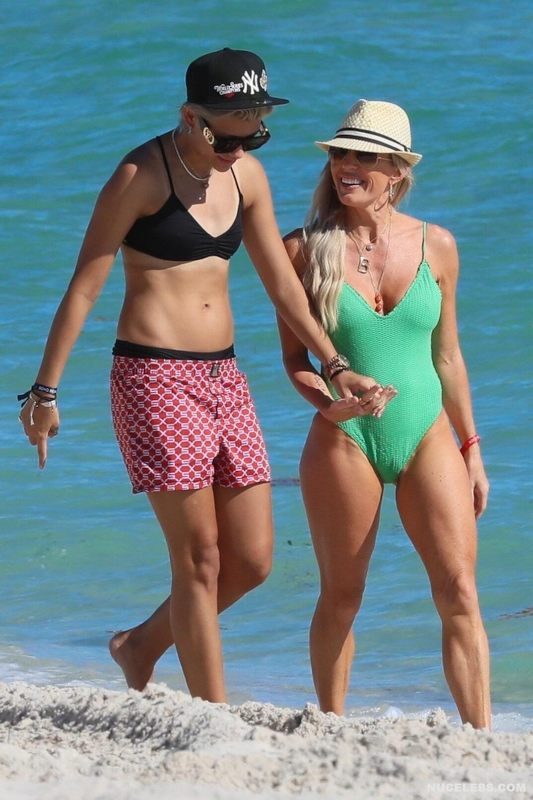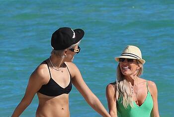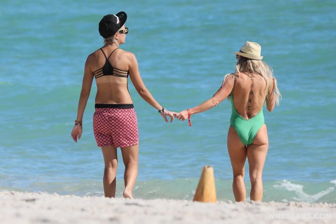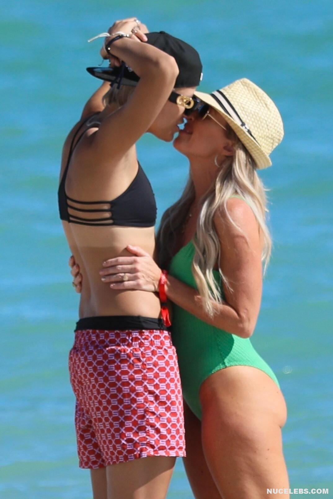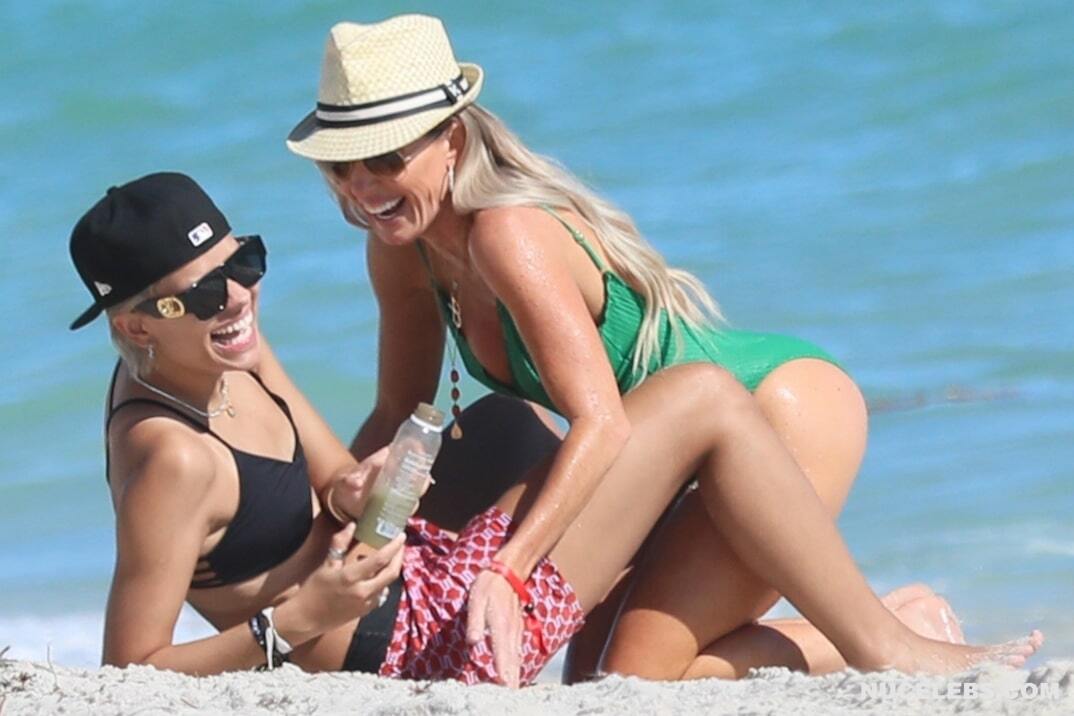 44-year-old Braunwyn Windham-Burke had a great time on the beach with her girlfriend. It’s a pity that Braunwyn Windham-Burke didn’t show her nude boobs or ass, but her pictures in a green swimsuit will definitely not leave you indifferent! This hot blonde was having a great time swimming in the sea. In addition, Braunwyn Windham-Burke was kissing her girlfriend and even allowed her to publicly grope her almost nude ass!