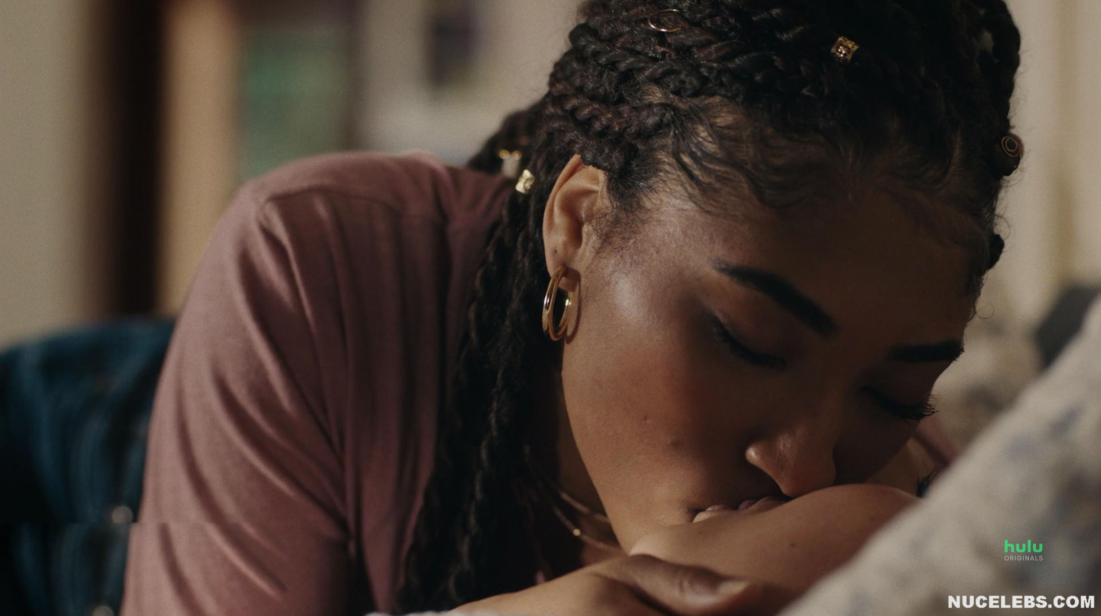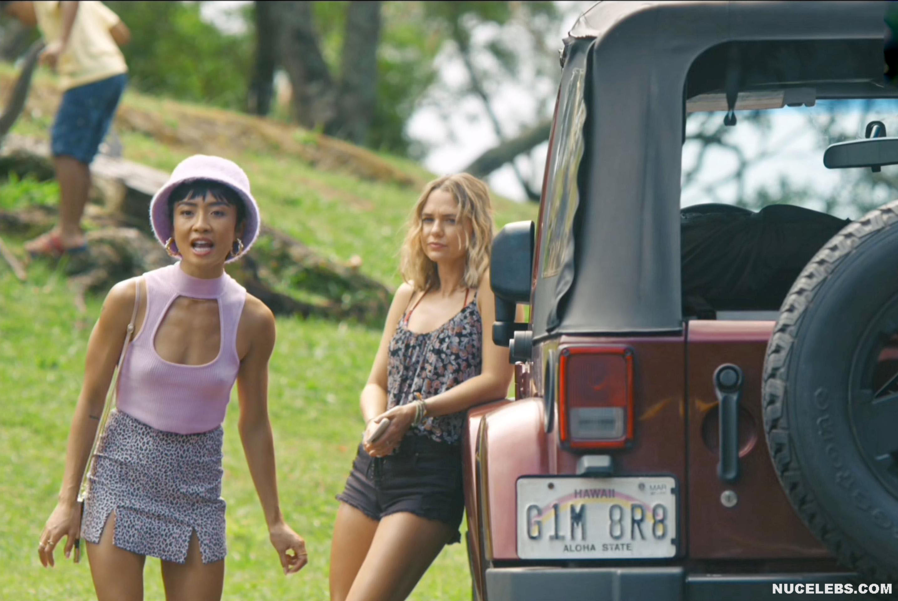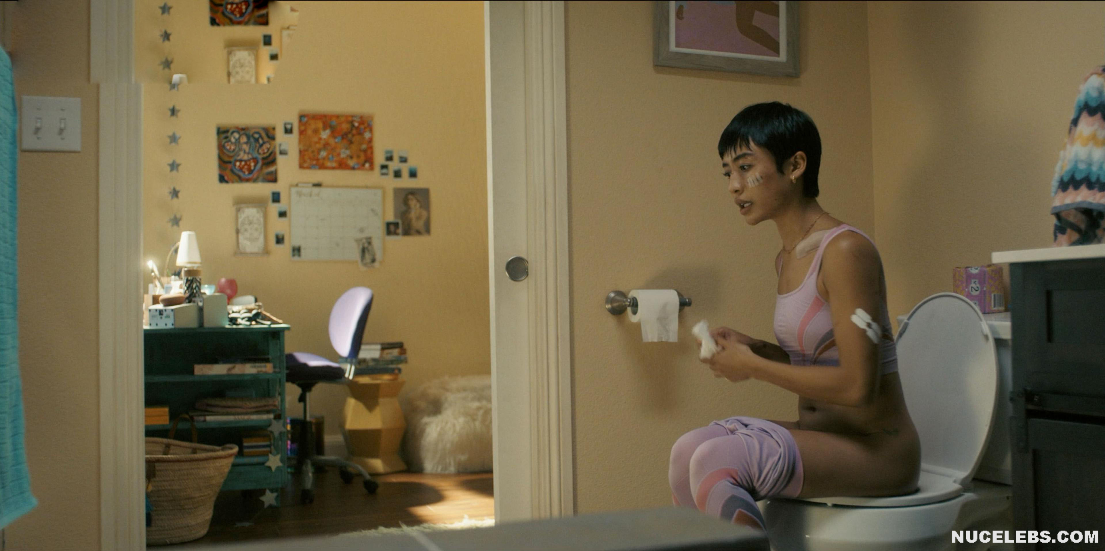 Check out her acting in I Know What You Did Last Summer (2021). The scene in which this American actress sits on the toilet with her panties down is undoubtedly unforgettable. However, you also will not be able to take your eyes off her poking nipples in a tight pink top in another scene. Her hot lesbian kisses with a blonde girl at a party, as well as in an intimate setting, will make your heart beat faster. Especially when Brianne Tju nude miniature tits with brown nipples were shown close-up when the girl caressed them!