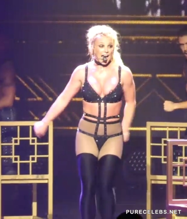 In one of her super erotic performances, Britney Spears was wearing thigh high boots with high heels and silky pantyhose, super small panties that were barely covering her intimate parts and a bra looking top, connected with the rest of the clothes with stripes. The performance was slayin’ but everyone has noticed a little nipslip moment she had and paparazzi have managed to have a great close- up of it.
