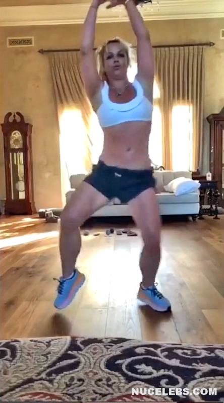 Britney Spears continues to tease her fans … Not so long ago, this beauty posted a video on her Instagram in which she dances a hot striptease. The girl was wearing a short white top and blue shorts. During the dance, Britney Spears pulled her shorts down to practically show off her nude pussy. It will definitely turn you on! You will also like the topless photos of this singer, which she also shared. Britney Spears posed, covering her nude juicy tits with her palms.