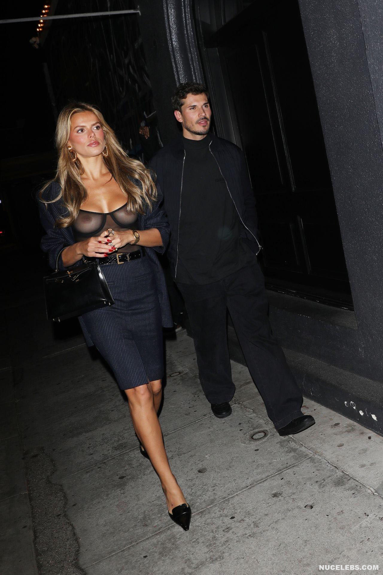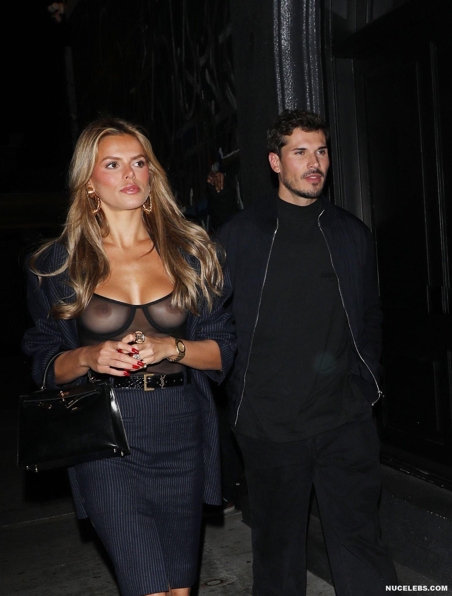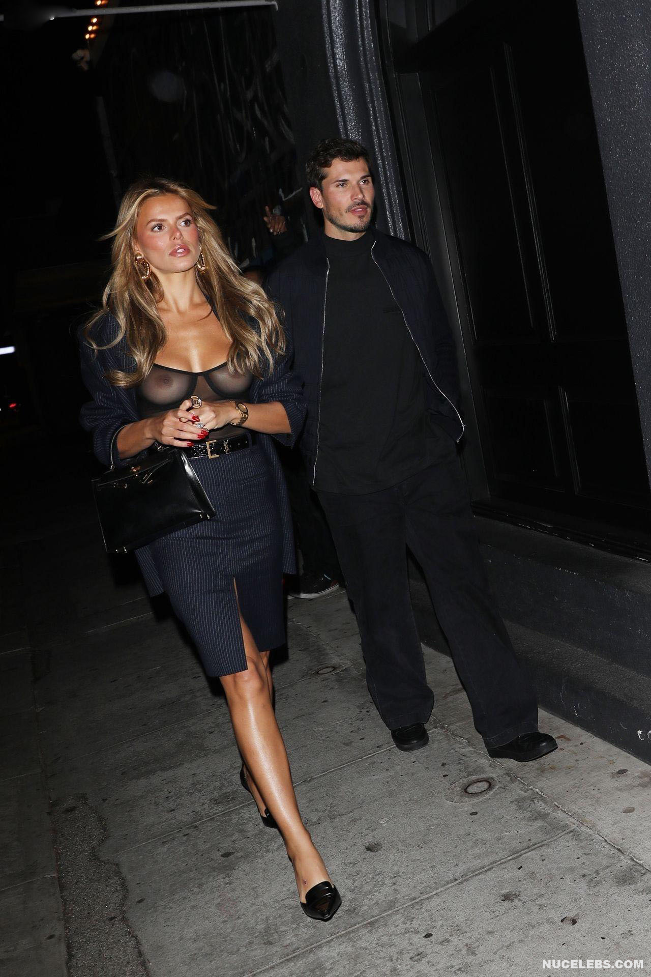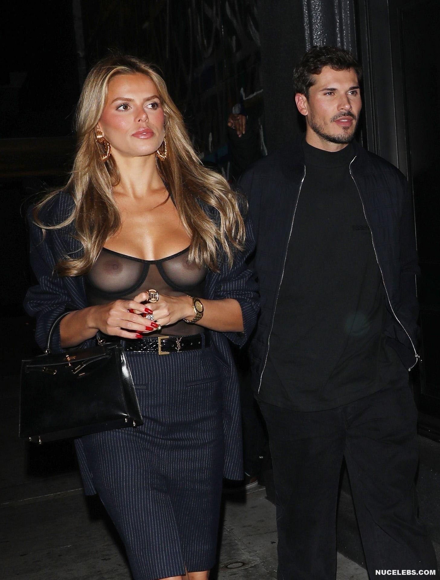 Brooks Nader nude boobs made everyone around talk about them! And all because this American model showed them off in public! So, this beauty was seen going out in a tight skirt and a black transparent top. This time, the celebrity was braless, to allow your imagination to run wild. So, Brooks Nader nude tits, which were visible through the transparent fabric, turned out to be so big and juicy!