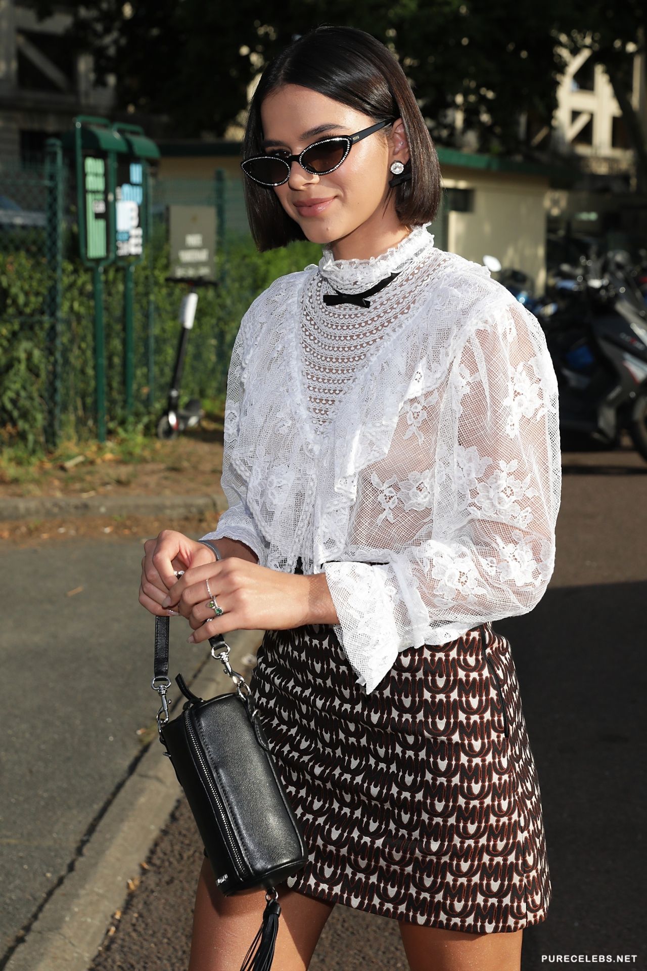 Recently, the charming brunette Bruna Marquezine was caught by the paparazzi in a frank dress. The celebrity wore a white blouse with ruffles, a plaid skirt and black boots, and also complemented her image with large earrings. It is worth noting that the beauty feels confident enough not to wear a bra, and so now we can admire the look of her beautiful boobs with small nipples that show through her translucent blouse.