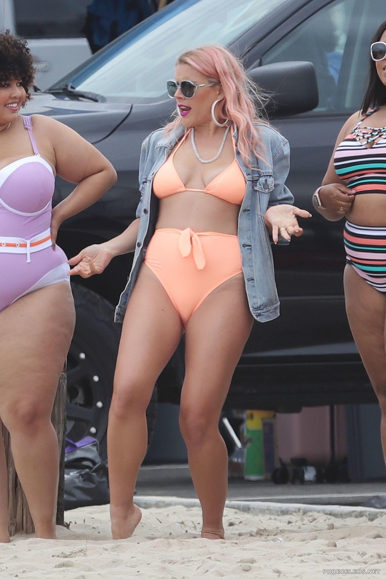 Busy Philipps is not only a wonderful actress, but also successfully realized herself as the TV presenter of her own show “Busy Tonight!”. Paparazzi managed to shoot some shots from the filming of her show in which she poses in a pink bikini and denim jacket. The bra beautifully emphasizes the big bust of the star, and the panties show off her gorgeous big hips. This telecast promises to be very exciting and hot!