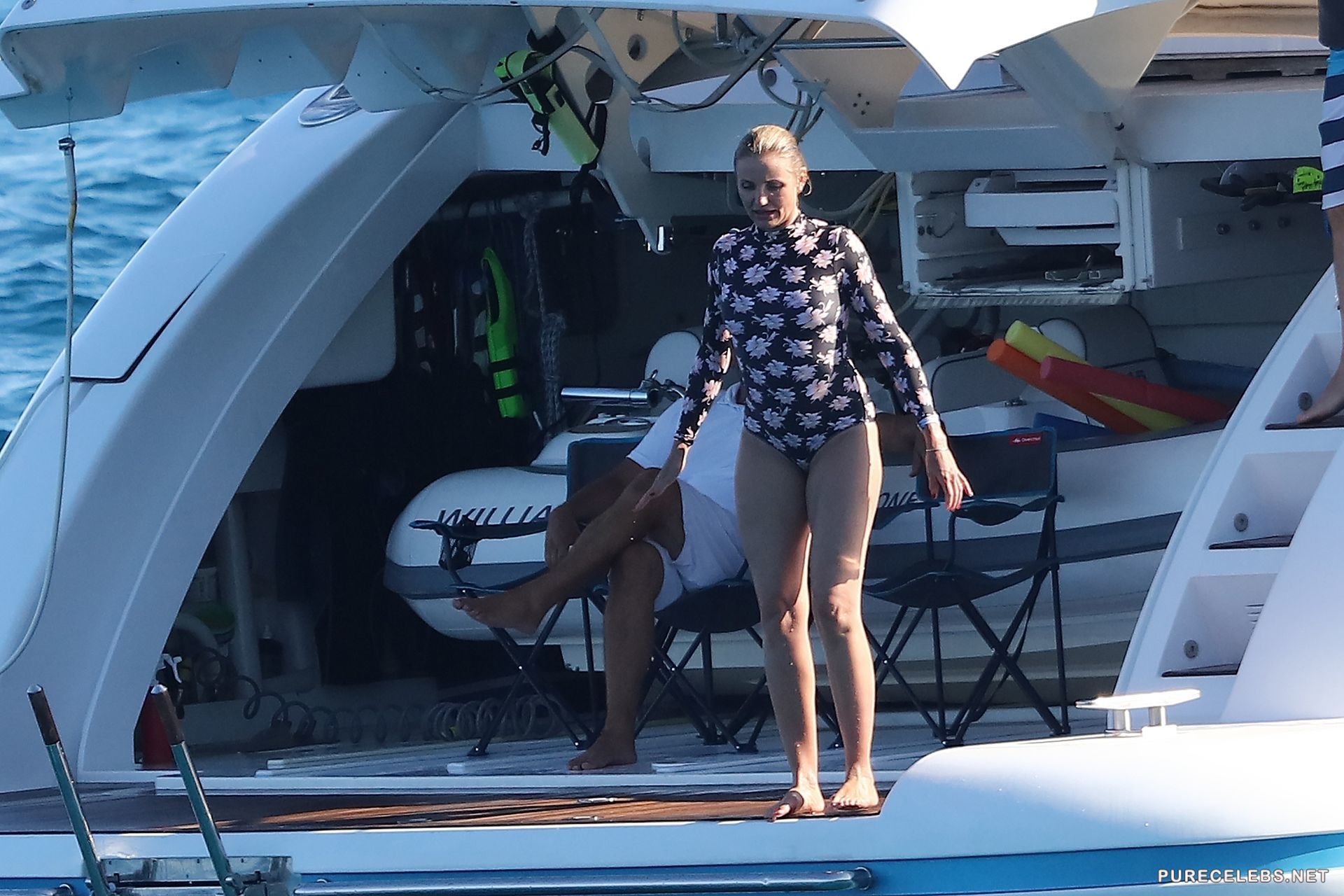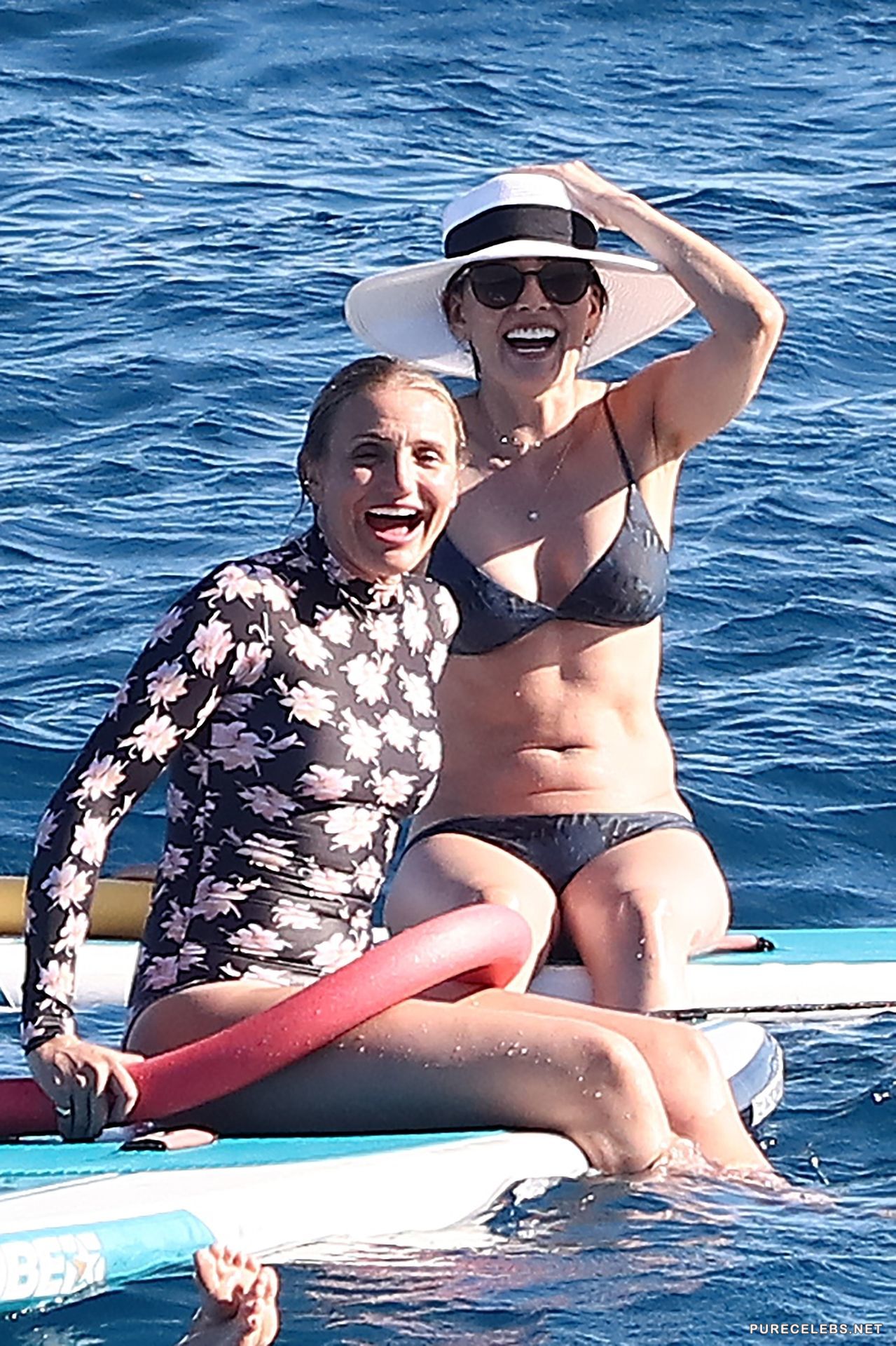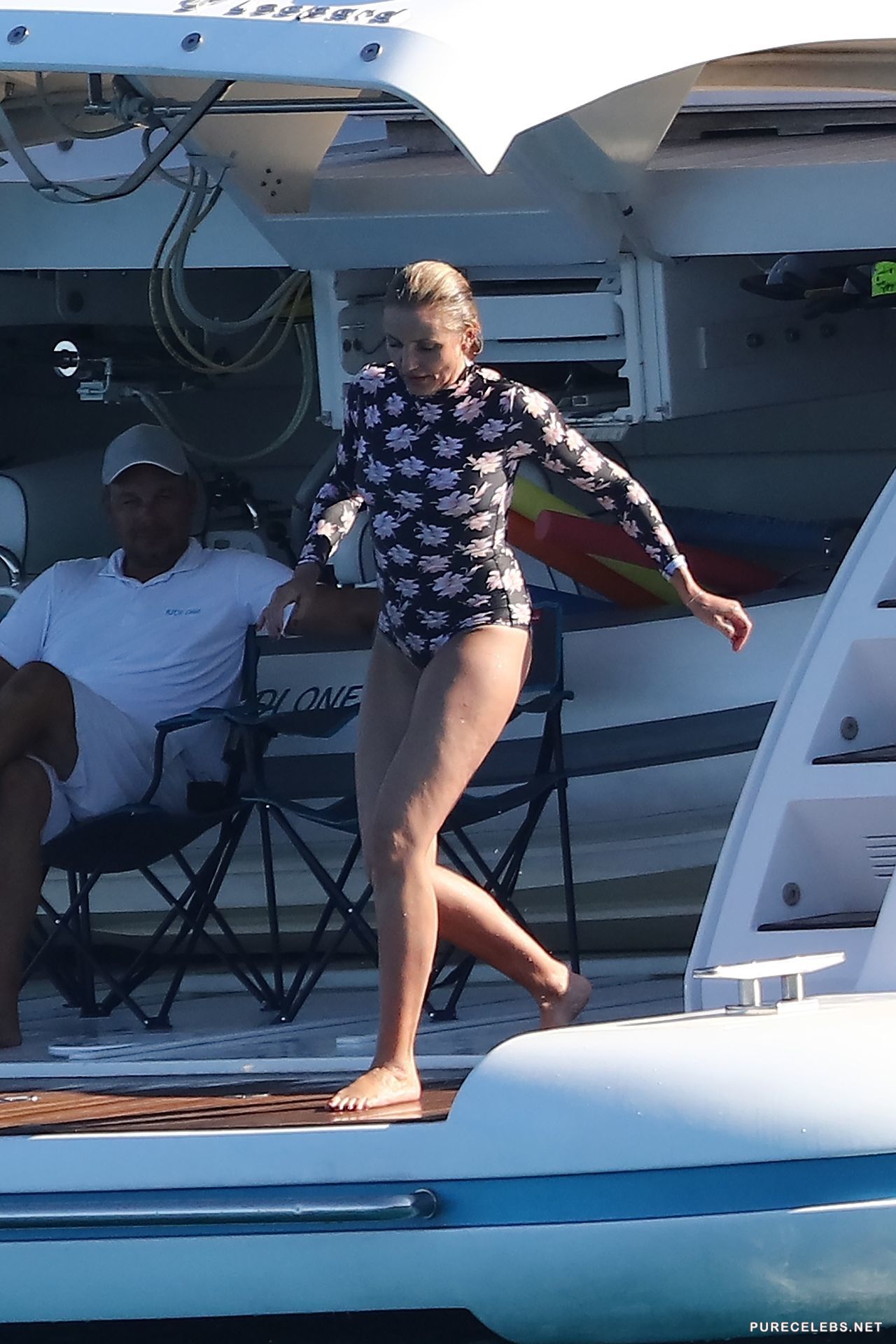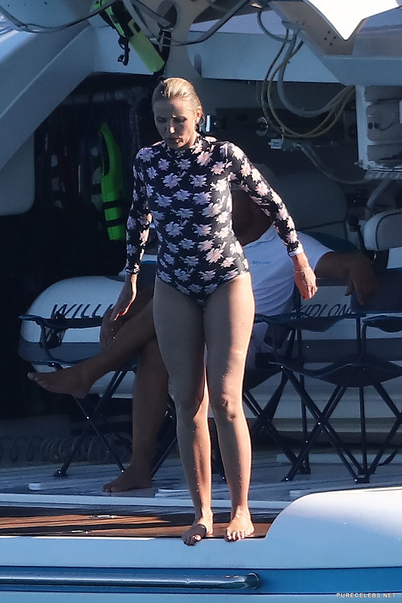 American actress Cameron Diaz, like many celebrities, prefers outdoor activities. For example, this star loves to sail. Recently, the paparazzi caught her when she swam on the board in the sea, flaunting her charming buttocks. The hot blonde was dressed in a black floral swimsuit, and her booty looked very sexy in it, especially when she came out of the water and drops flowed down her chic body.